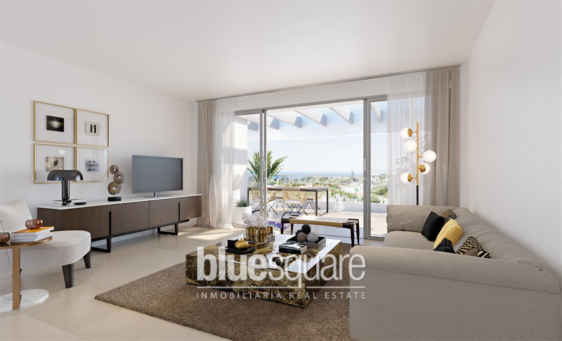 This outstanding new build contemporary apartment is of luxurious qualities and is based in Marbella. With just 5 minutes from Marbella’s centre and some of the most beautiful beaches found on the Costa del Sol. It is sited within one of the coasts most famous golf course communities. This luxurious apartment comprises of 2 very spacious bedrooms and 2 very designed bathrooms. With a beautiful open plan kitchen, that flows in to the very spacious living area enduring natural light throughout. Additional extras of this outstanding property are many, such as High standard specification Domotics, independent aircon hot & cold (AIRZONE), under floor heating in bathrooms, fully fitted open-plan kitchen, fitted wardrobes, large format porcelain floors, smooth doors lacquered in white, double glazed aluminium sliding doors and windows but to mention a few. Also included in the price is an underground garage parking space and also independent storage room. This very safe and high quality community also boasts a heated outdoor swimming pool (salt water), indoor gymnasium, saunas, laundry area and open co-working terrace but to mention a few additional extras. With Malaga airport just 35 minutes away and Puerto Banus only 10. This new build opportunity represents outstanding upturn investment. A must see, when contemplating living in one of the best and most beautiful areas of Marbella, Costa del Sol.