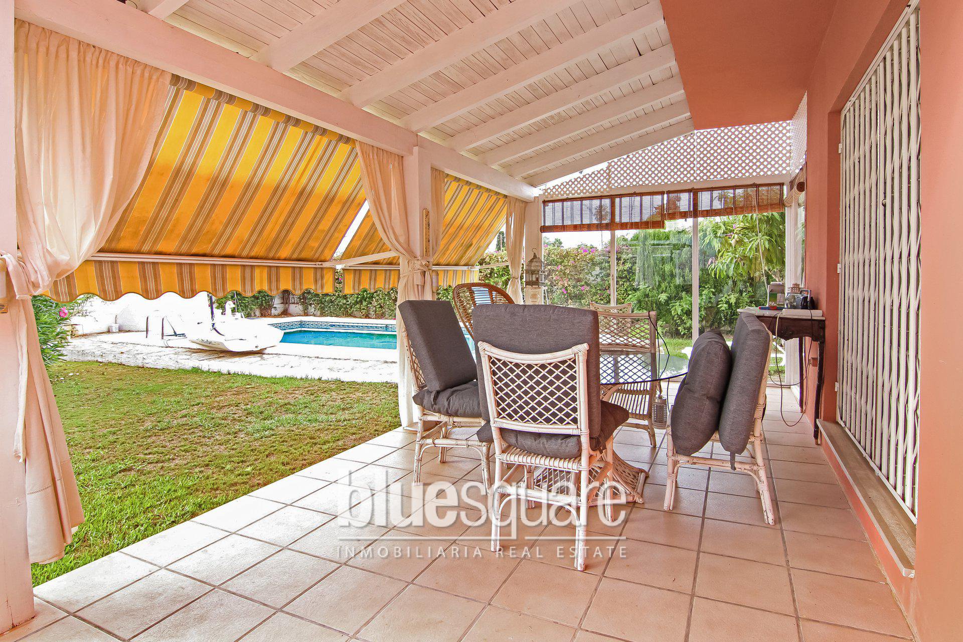 This villa is located in the most exclusive area, only 350 meters from the beach and walking distance to every amenities in San Pedro town, and less than 5 minutes from Puerto Banus. It is also 5 minutes to the famous boulevard in San Pedro, there are kids playgrounds, Skate Park, and every festivals, local shows are held on the boulevard open concept theatre. This villa includes 3 bedrooms 2 bathroom with a large flat plot and a big swimming pool. It has a big kitchen with marble floors and the 2 large bathrooms, the living room has a chimney and the entrance has lots of cupboard spaces. On the beach promenade there are “chiringuitos” (beach bars), restaurants and bicycles and also jet skis for rental. Villa Marbella in 7 minutes from the centre and 5 minutes from Puerto Banus.