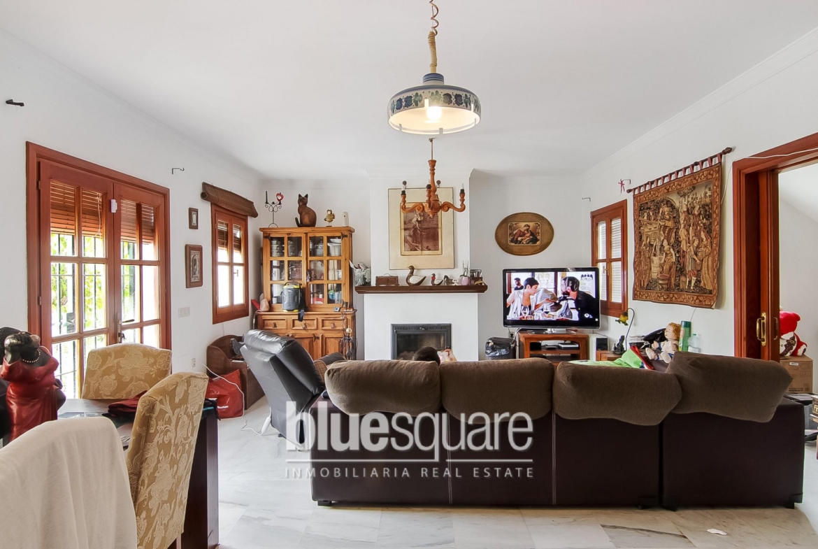 This charming villa is located in a quiet area and less than two kilometres from the centre of Estepona and its beautiful port, the villa is less than 500 meters from the beach and all amenities. The villa has two completely independent access one arriving at the main entrance and the second on the ground floor. On the ground floor we will find a bedroom with its bathroom, a large living room and dining room with a large semi-open kitchen on the living room, you have direct access from the kitchen or living room to a beautiful terrace with sea views and also access to the pool and barbecue area. Upstairs we find three bedrooms plus a bathroom, the master bedroom of a very nice size has access to a private terrace where you can have breakfast while enjoying beautiful views of the sea. On the ground floor you will find a very large garage plus an empty part that could be transformed into a bedroom or independent studio, gym, games room, etc… The house needs a bit of refurbishment, and for this reason we are in a very good price.