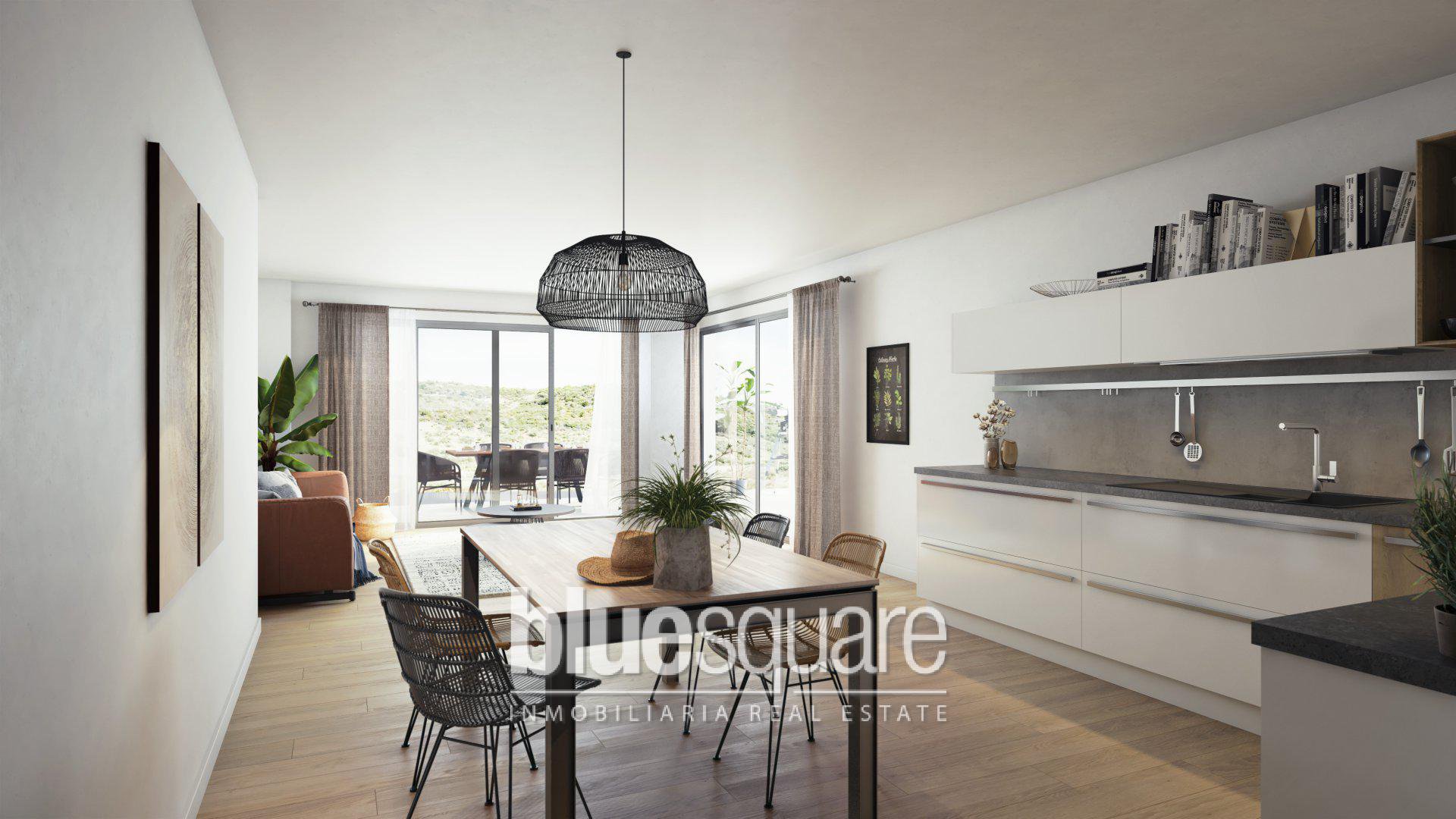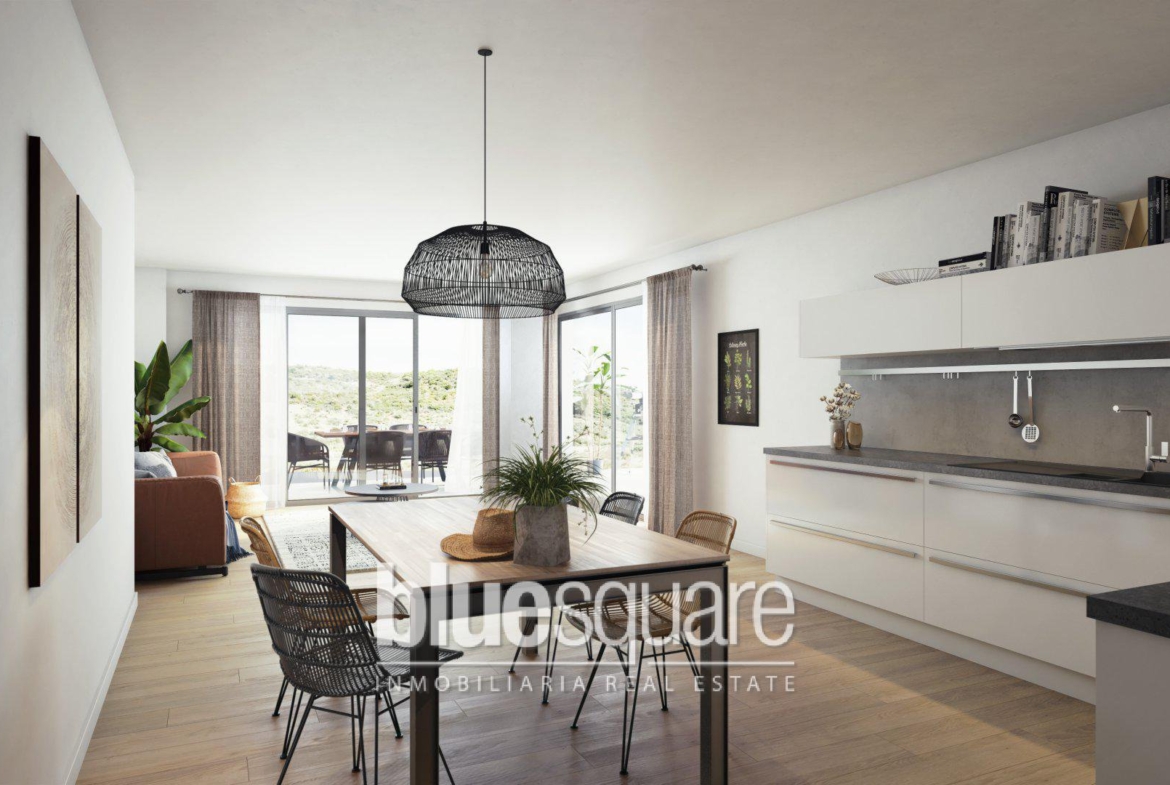 It is a closed residential complex consisting of 66 homes of 2 and 3 bedrooms, divided into 5 blocks of ground floor plus two levels and a solarium on the roof. Alternating views of the countryside, the sea and of the splendid communal gardens with the community pool. One can immerse oneself in a calm sensation that invites one to rest. The sun manifests permanently from its exit until practically its decline, depending on the orientations of the different blocks, in which the south-southeast orientation predominates. Homes conceived with functional interiors and rooms as diaphanous as possible, to make the most of the space. A modern project, designed to accommodate all kinds of lifestyles, with one element in common: letting yourself be carried away by the tranquillity that is breathed in an area bathed by the notes of the countryside that borders it. The kitchens open concept, laundry and a good storage capacity as built-in wardrobes, along with large terraces, gardens and solarium. In addition, you can benefit from the proximity to Albayt Resort & Spa, where you will find a magnificent spa, fitness centre, paddle tennis court and golf academy.