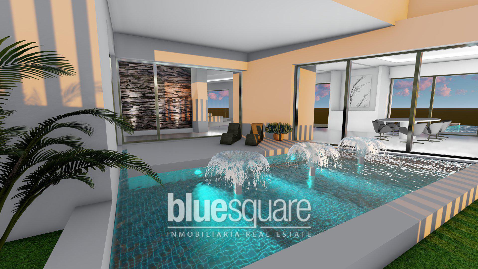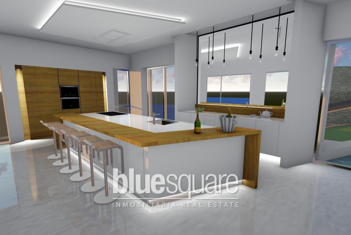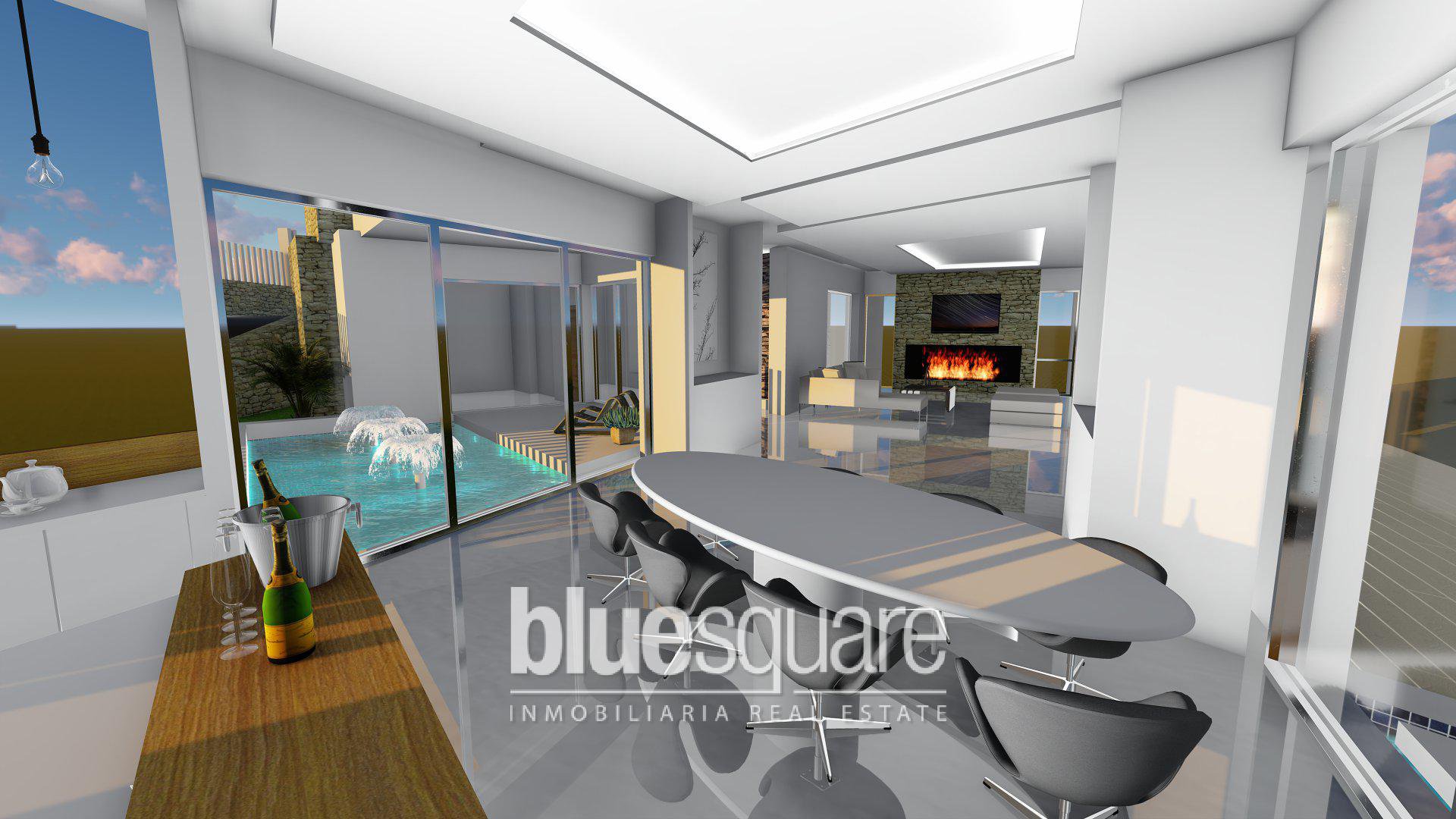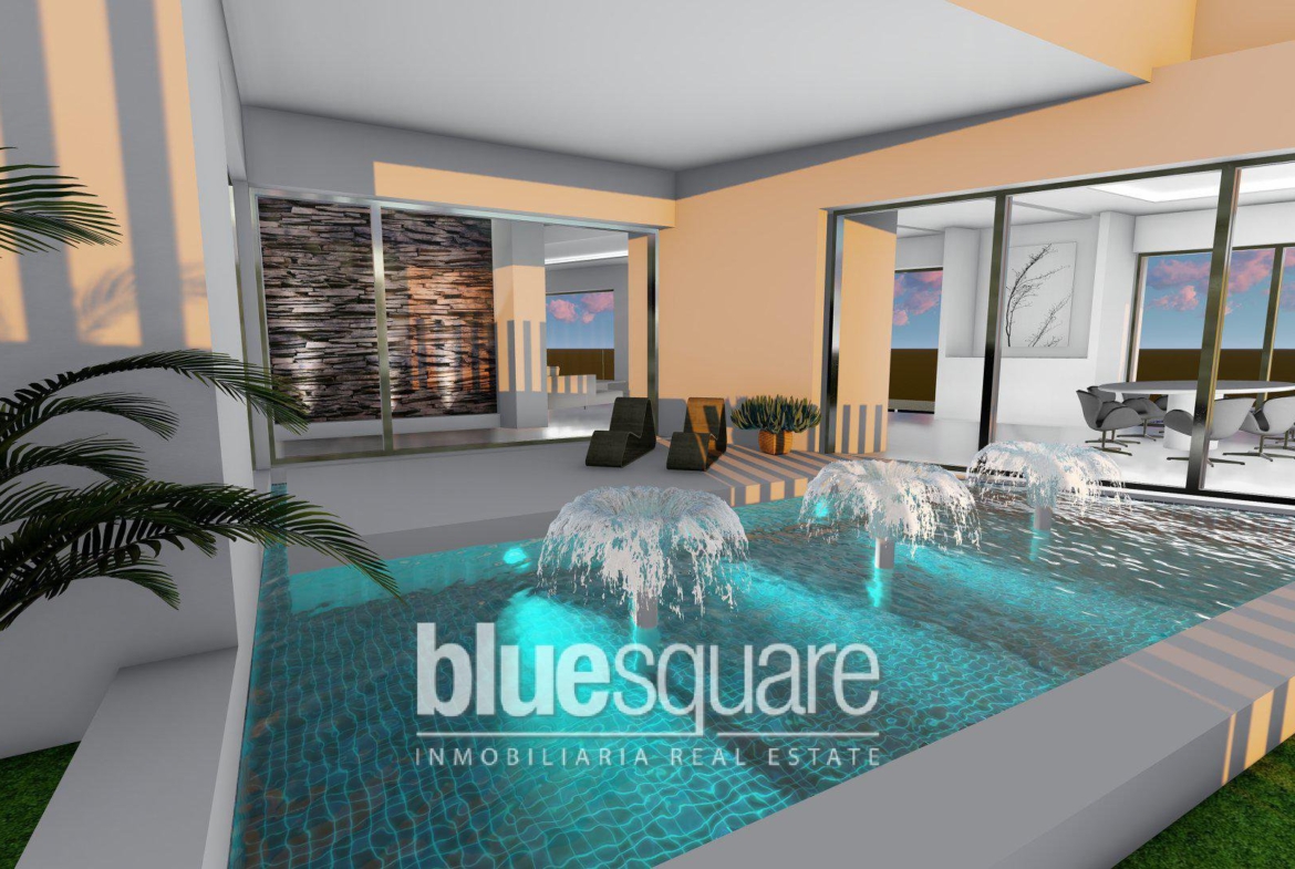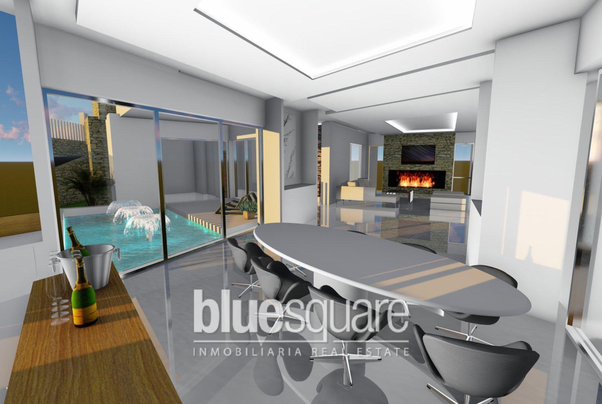 This “Eco” villa is located in a lovely location near La Cala de Mijas. It is close to one of the most prestigious golf courses on the coast and has amazing views over the valleys of Mijas and the Mediterranean Sea. On the ground floor you will find a garage, a storage room along with two bedrooms with two en suite bathrooms. One of the bedrooms includes a dressing room. There is also a living area with exit to the garden. There is an additional room with pre-installation for the home cinema (or gym to choose) as well as an additional toilet. On the first floor you will find an entrance hall and additional bedroom with en suite bathroom, a kitchen-living room that provides an open space with a fireplace that open out onto the terrace with a flown pool with glass front. The villa has multiple windows and floor to ceiling doors providing a large amount of light and an airy atmosphere. The villa is in a very peaceful location but also ideal as it has easy access to multiple amenities such as the shops, the beach, restaurants as well as the highway which gives direct access to Malaga airport or Marbella.