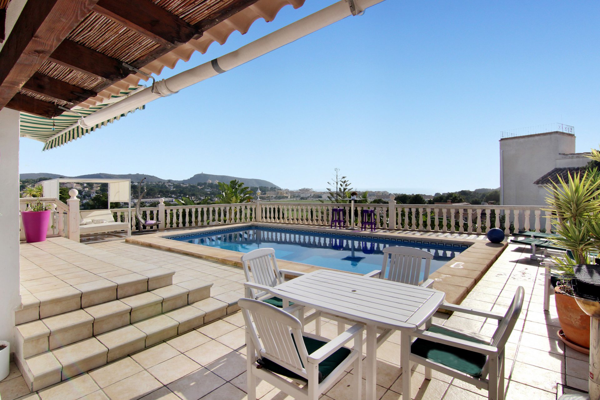 Splendid house has moraira include 2 large suite, 2 bedrooms, 3 bathrooms, lounge with amazing sea view and the center of Moraira. All access is within 700 meters including downtown, carnival celebrations, accompanied by a beach and restaurant, shopping center, school,etc..