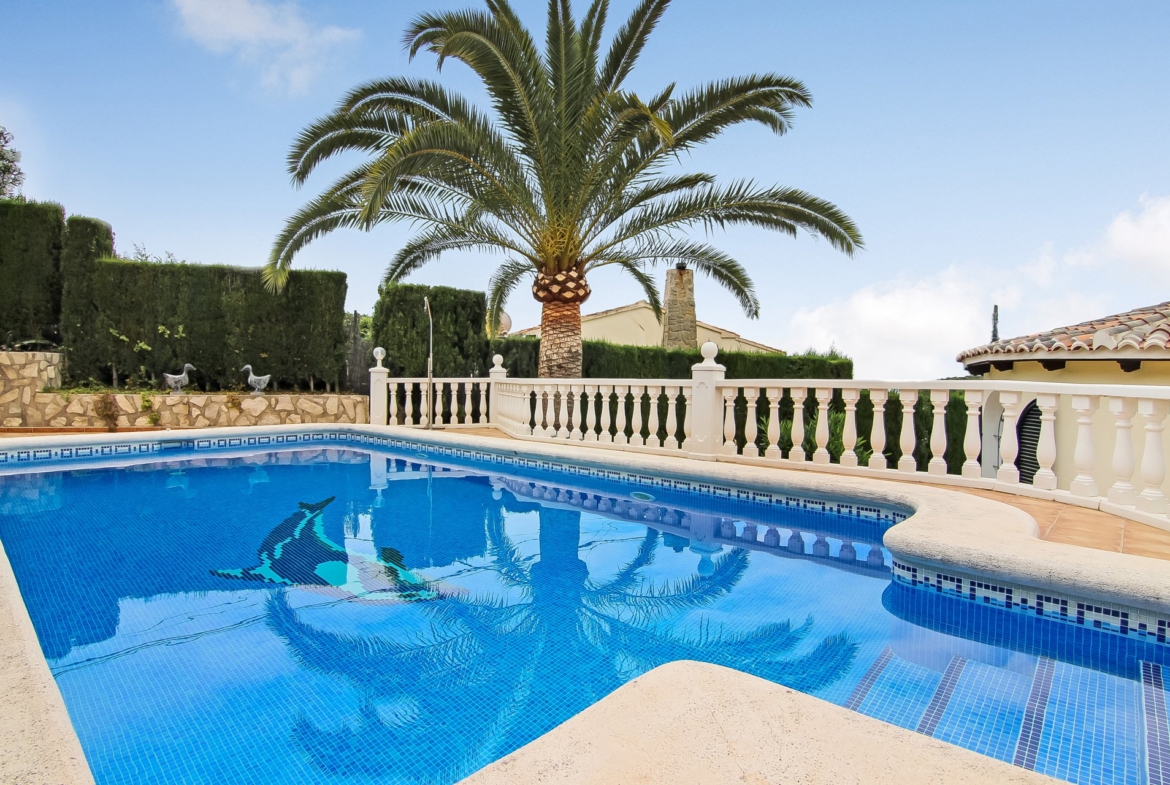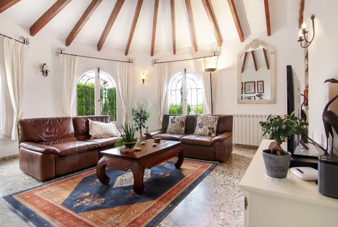 Villa situated within walking distance to the sea and the supermarket and only 10 minutes drive to the centre of Moraira. This house, built in 1968, has been completely renovated in 2004. The main floor features a spacious living room, a fully equipped kitchen with induction plate that gives out to the dining area, which offers fabulous sea views, 2 spacious bedrooms and 1 bathroom. The large pool terrace is located at the back of the house and benefits of a lot of privacy and has a large outside summer kitchen. The lower level is completely separate and features a bedroom with en suite bathroom. Looking for a permanent home with a large terrace? This is your ideal property.
