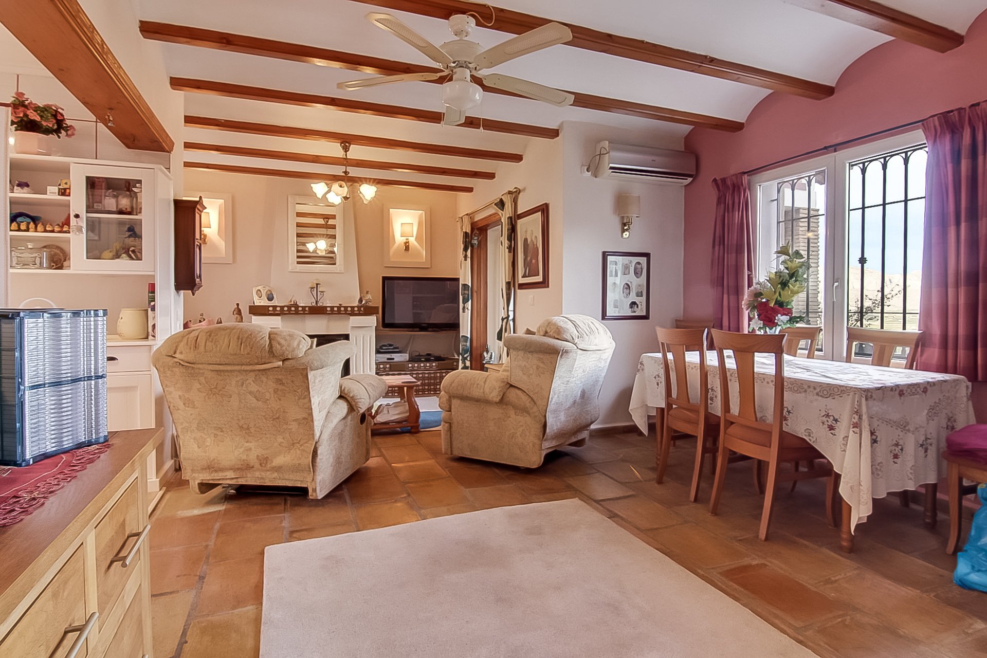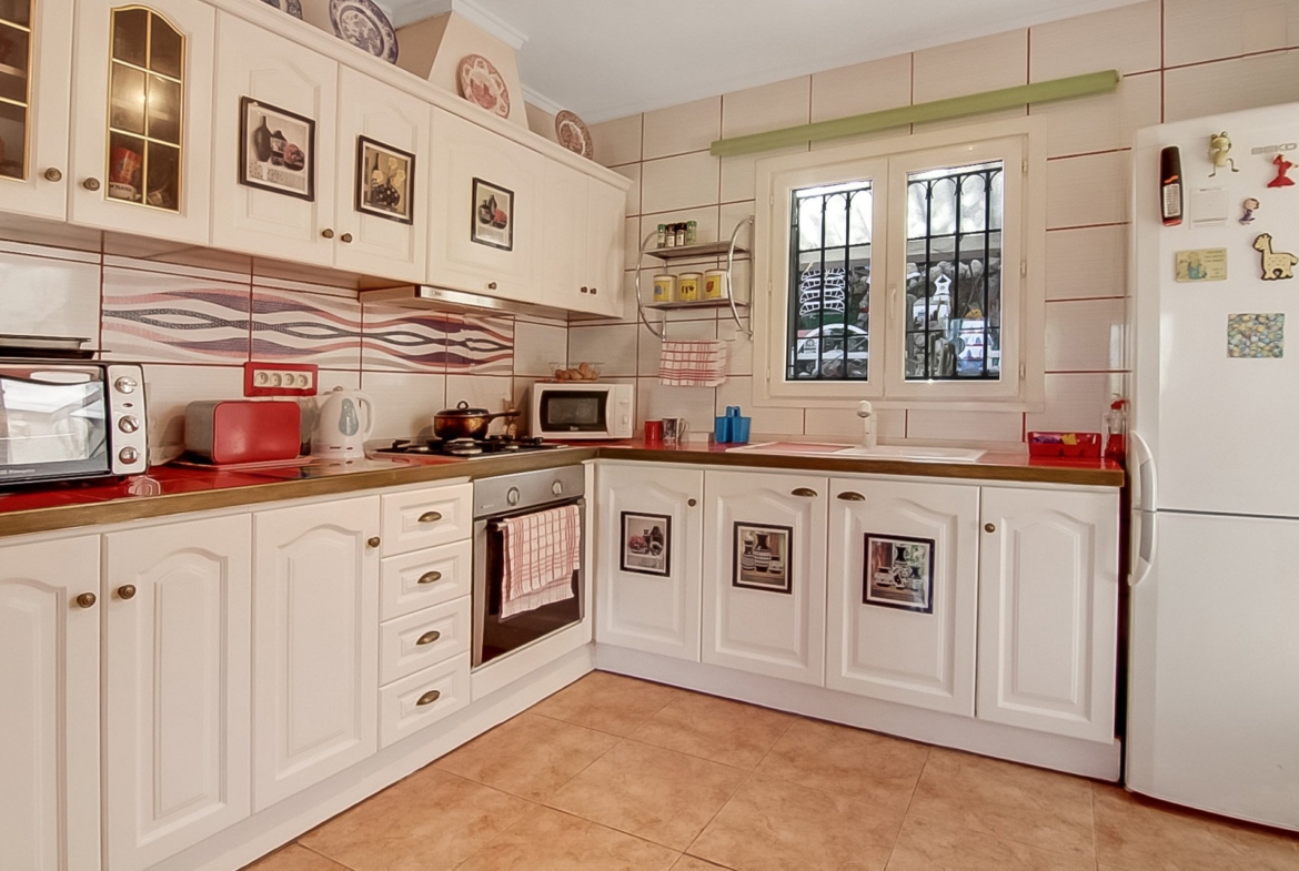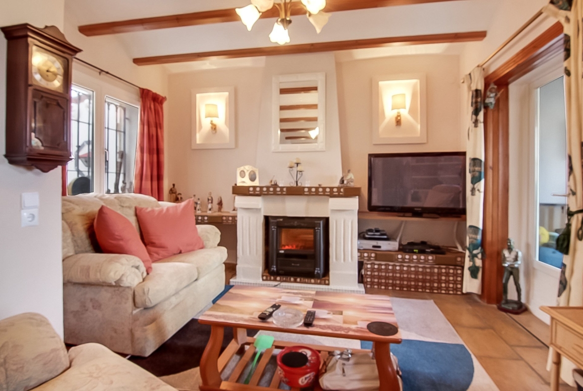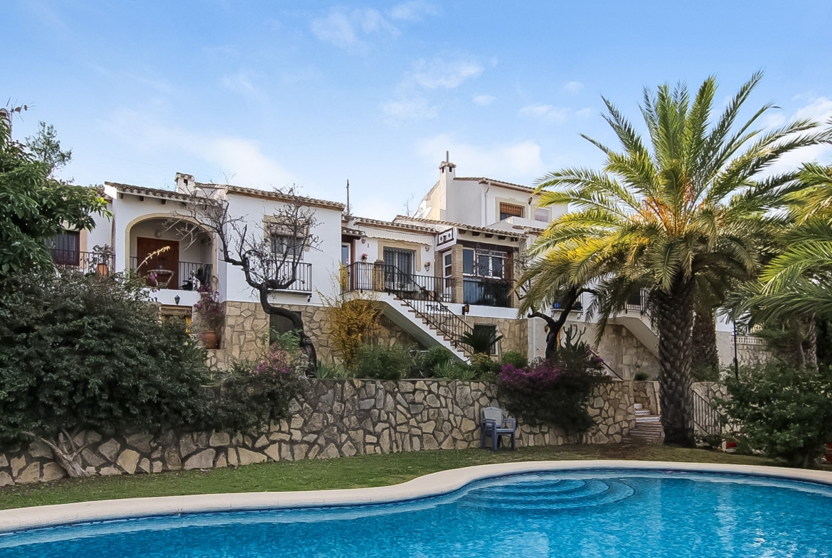 Well maintained house in a small private crescent with a pretty communal garden and pool. The house is split level with two bedrooms, a large living area and a quiet rear terrace on the first floor. The ground floor is a two bedroom self-contained flat with a separate entrance. Only a short walk into the village of Benidoleig where there are plenty of shops and bars. The house commands lovely village, mountain and sea views.