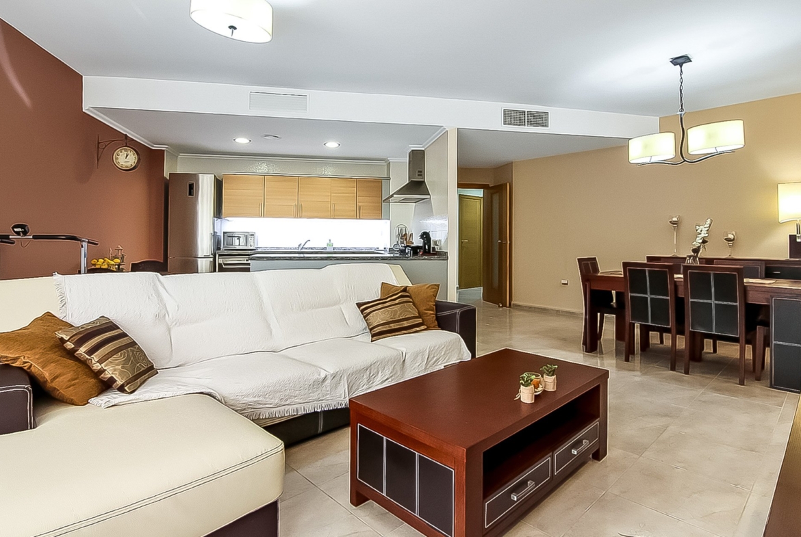 This spacious apartment is located in the centre of Benitachell. The property benefits from a private outside terrace of approximately 20m2. The building is accessible for disabled. The living room is spacious and benefits a fully equipped open kitchen. The air-conditioning is pre-instated. There is a large parking space underneath the building. Located on in a lovely Spanish square in the centre of Benitachell. The apartment is in perfect condition, great value for money and ideal for rentals income.