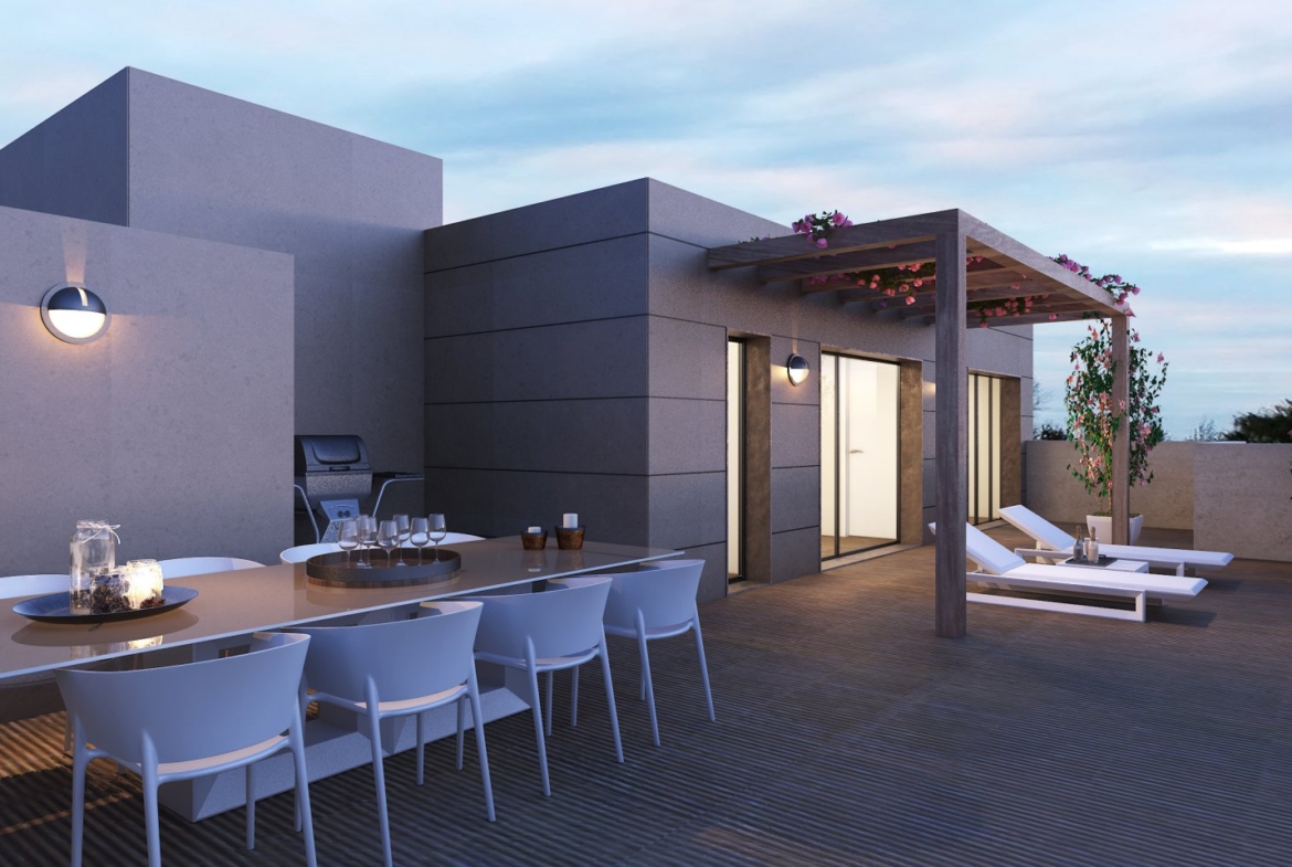 New 1 bedroom, 1 bathroom duplex apartment, in a stylish residential complex consisting of 42 apartments and duplexes spead over 2 buildings of only three floors. The apartment is situated on the second floor and disposes of a large private roof top solarium. The complex with large communal areas, swimming pool, parking and storage area is located nearby the beautiful Arenal Beach and close to all the amenities: supermarkets, shops, restaurants, bars… Ideal for long term living or to achieve maximum holiday rental potential. Prices start from 204.600€.