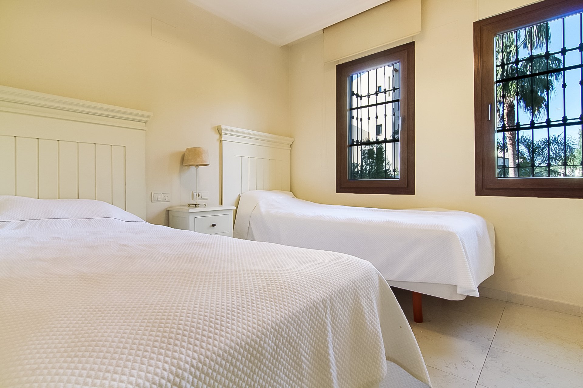 This luxury 3-bedroom apartment is situated in the amazing Villa Gadea resort. This resort stands for luxury, privacy and superb location. It benefits not only from being in a frontline luxury resort with a number of swimming pools and its own private beach but also from being adjacent to the luxury 5 star Villa Gadea Hotel. The hotel is known for one of Spain best spa facilities. The apartment itself is finished to a luxury standard and has 3 bedrooms and 2 bathrooms. The master bedroom has an en-suite bathroom with Jacuzzi. The living room is well sized and has an ample sized terrace and little private garden where you can entertain guests for dinner. If you are looking for an amazing apartment within a luxury urbanisation, this is a must see!