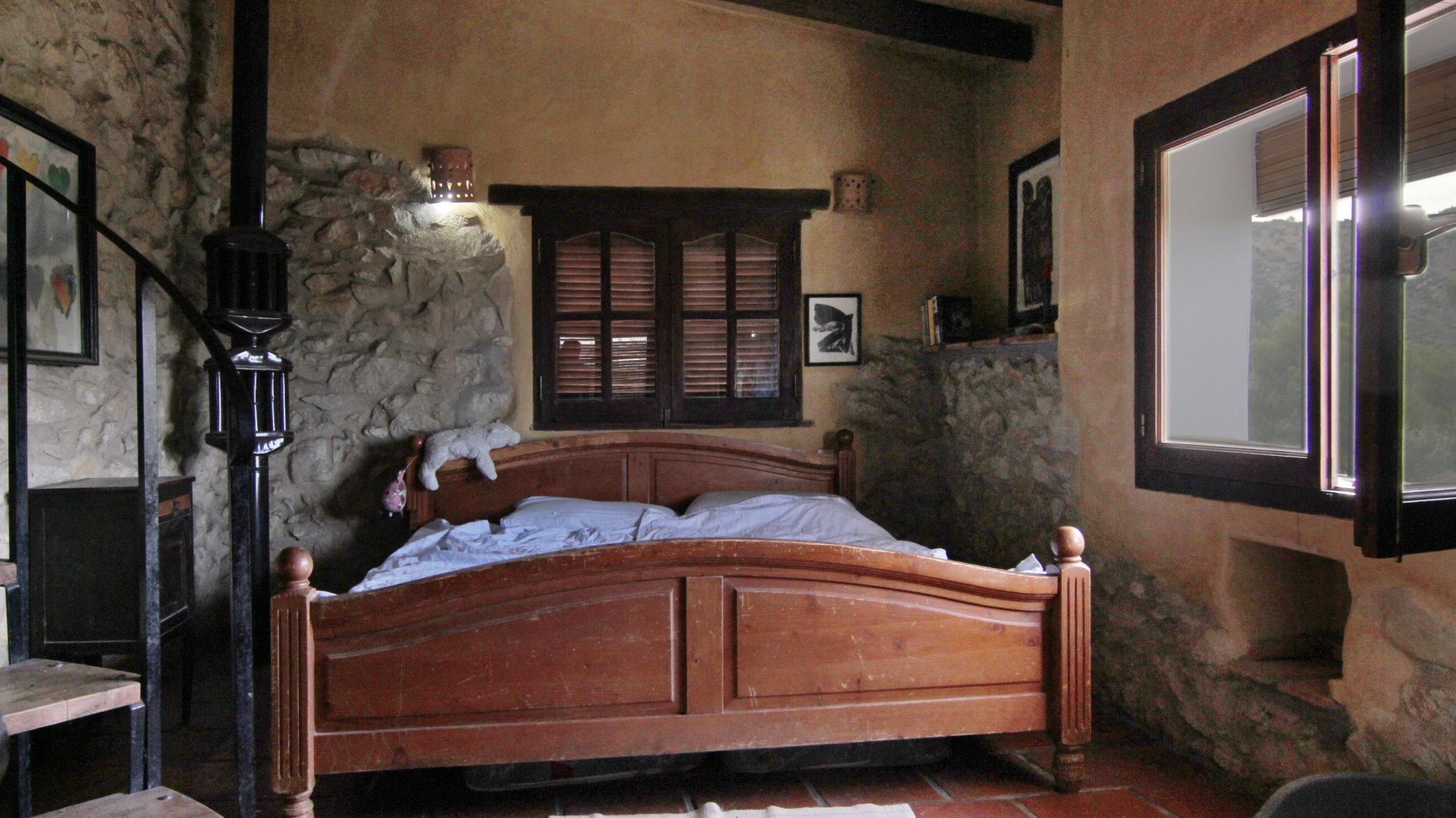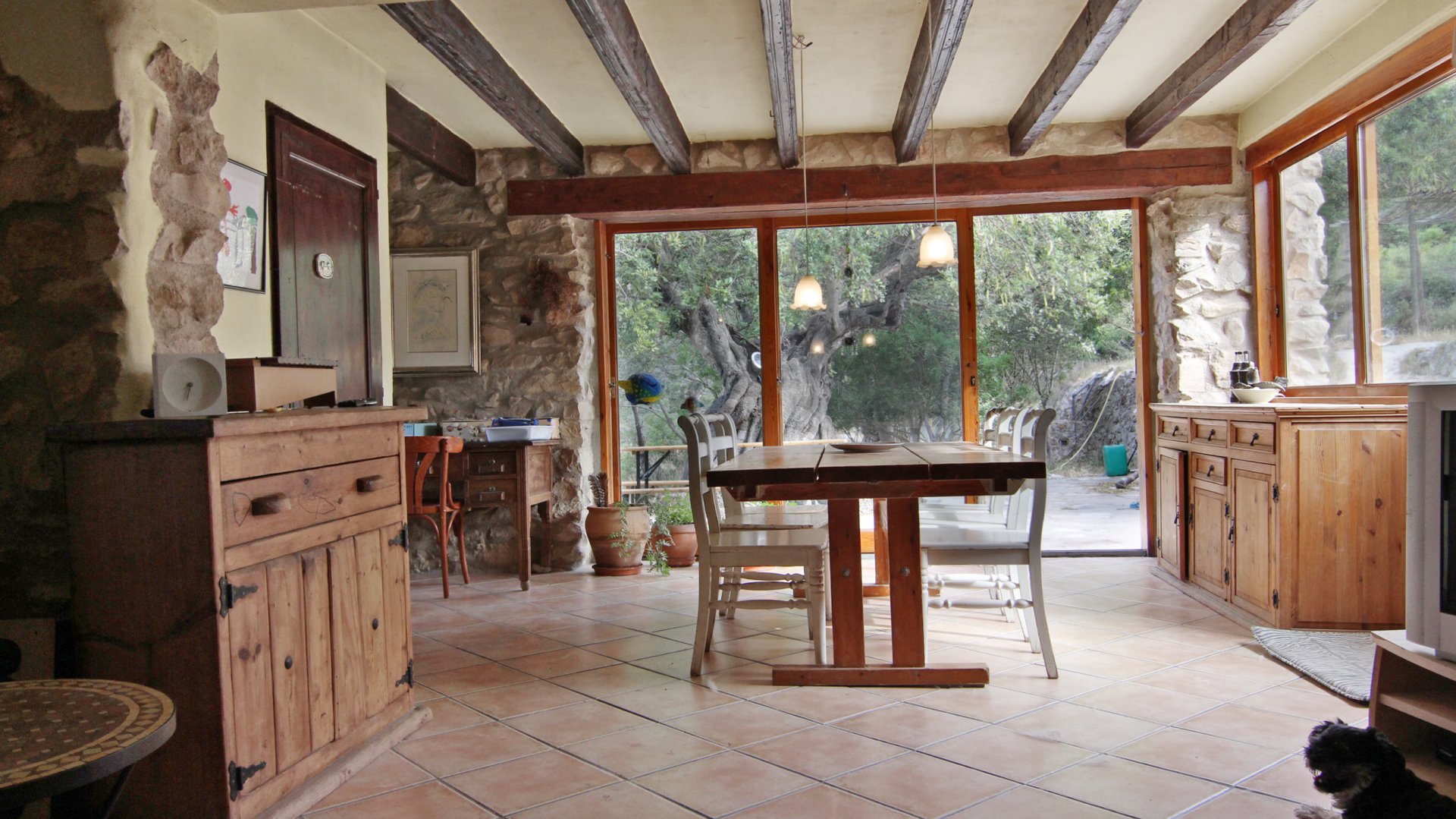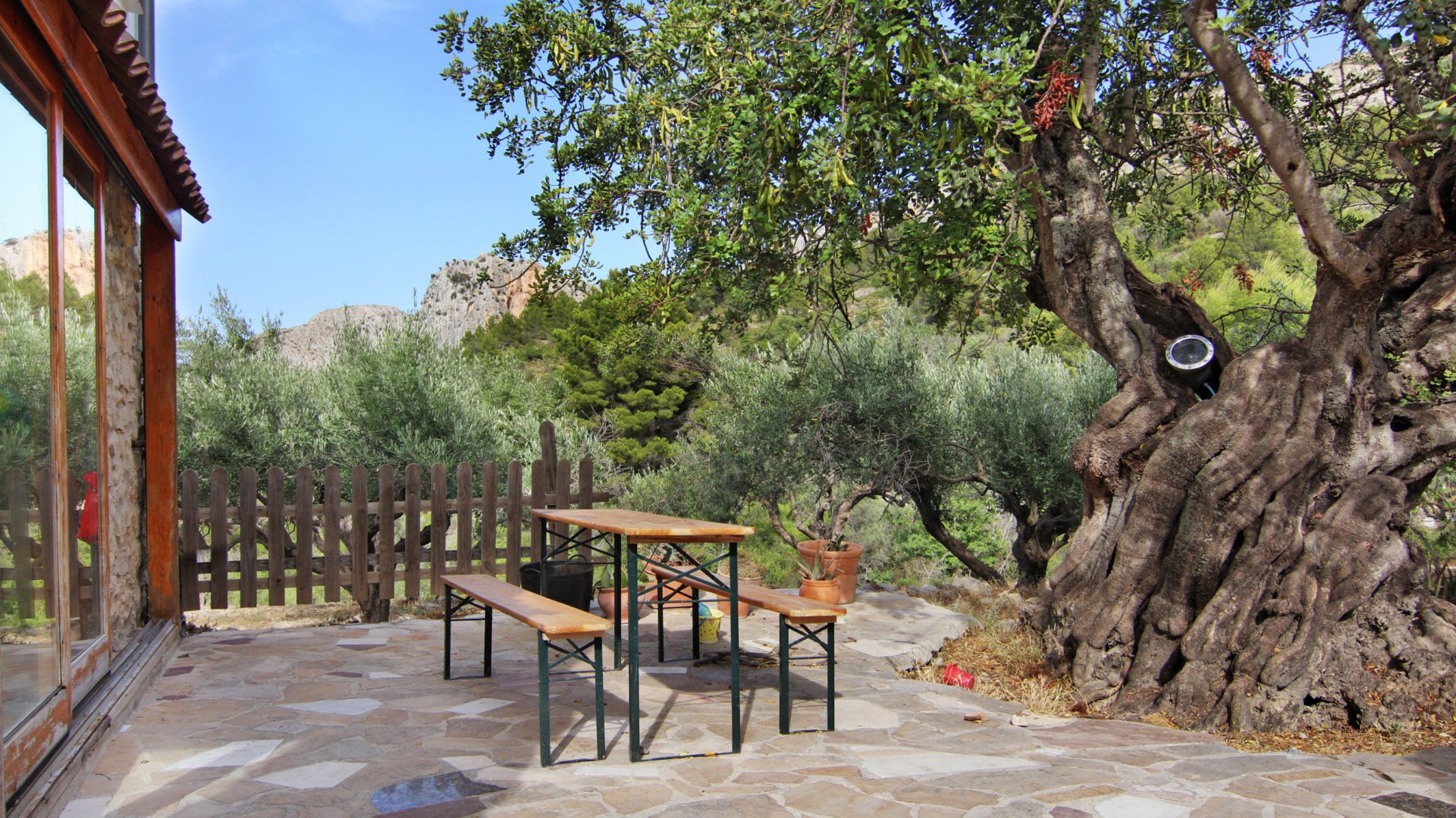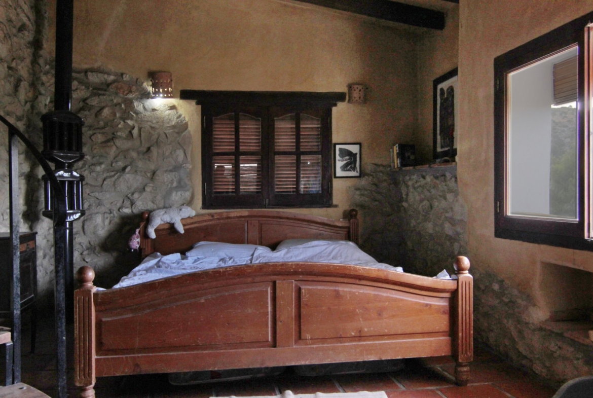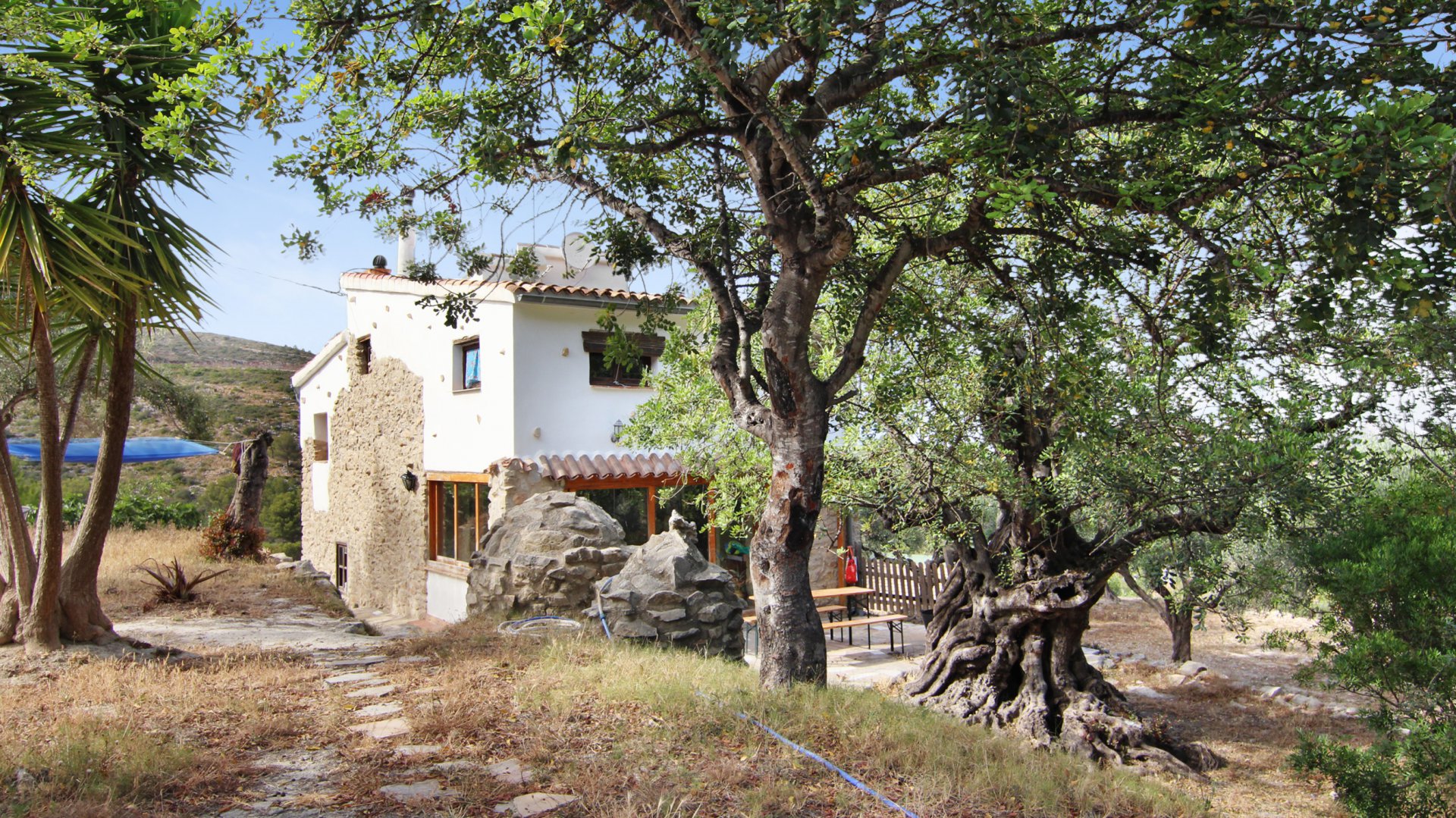 Lovely rustic 3 bedroom, 1 bathroom detached villa set in its own grounds of 12,000m2. The villa has been reformed very sympathetically to retain some of the old features, it has a very light living room/ dining room with 1 large glass door leading onto the terrace. Just off the living room is a downstairs WC with steps that lead down to the traditional kitchen with utility room and bedroom one. On the first floor you will find 2 further bedrooms, family bathroom and another living space. Stairs lead to the top floor thats a small office space with a balcony that has sweeping views of the mountains and countryside. The outside space has different levels, olive trees, a wooden summer house and at present the owner has a smallholding with goats and chickens. To the back of the property is a small plunge pool and pond.