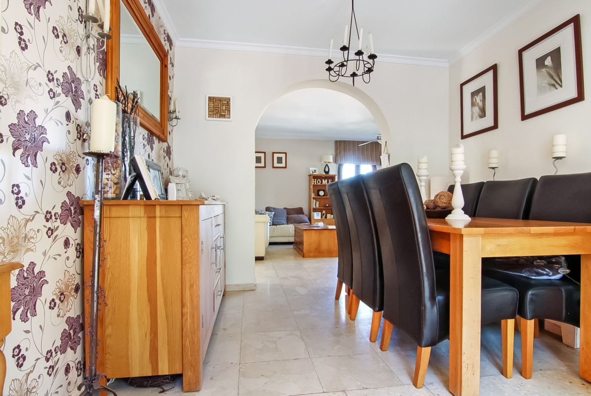 The villa has 4 bedrooms one with ensuite and two other bathrooms. The south-facing garden has a 10x4m pool and an outside shower and sun loungers to relax in the sun. Entering the villa you have a small naya, a dining room has a sliding patio door to open the villa out to the pool area, living room and a fully fitted kitchen. The small hall way leads to a shower room and the first twin Bedroom that has a fitted wardrobes and ceiling fan. The staircase leads you down to the second floor. There’s a relaxing area outside the back door with a 3x3m gazebo and a comfy wicker corner sofa to sit and look out at the panoramic view. Follow the hallway to the main bedroom with ensuite bathroom and ceiling fan. The third bedroom has two single beds with a large wardrobe, sharing a bathroom with the fourth double bedroom also with fitted wardrobes, both having black out blinds and ceiling fans. The bedrooms remain nice and cool throughout the summer due to the villa being south facing. Situated in a quiet residential area with stunning tranquility and panoramic views. The proximity of this villa is only a 15-minute walk to the nearest bar/restaurant and shop.