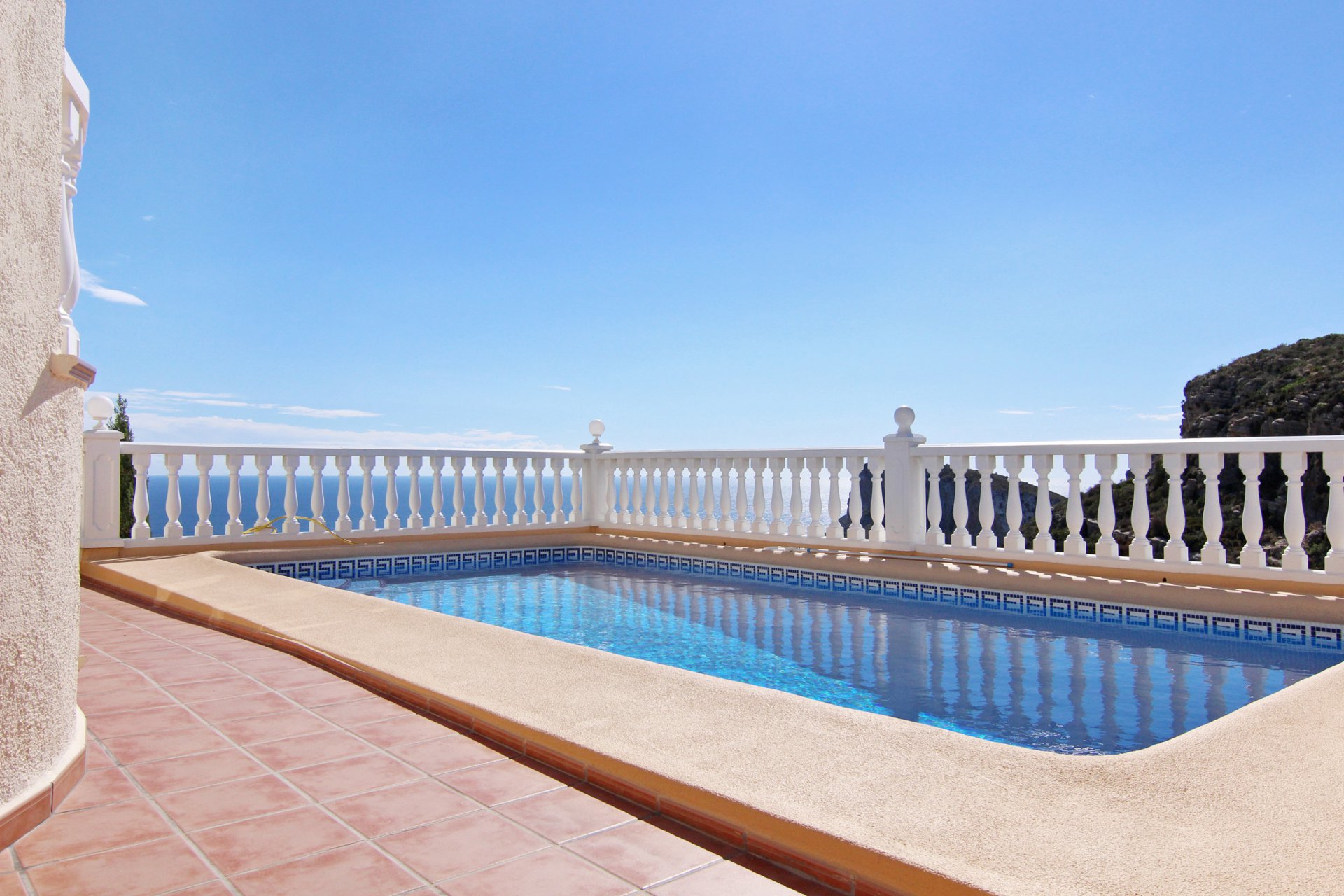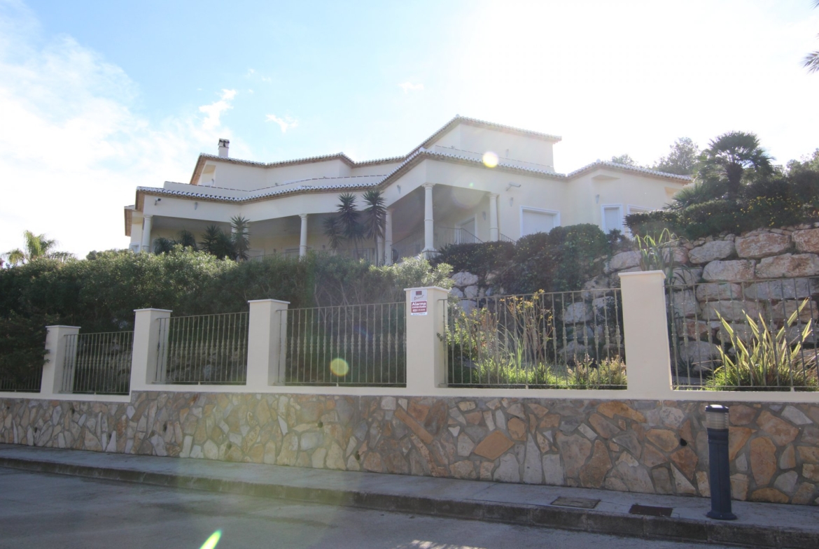 A fabulous and truly high end 4 bedroom property offering quality with no expense spared. The grand entrance hall and staircase is accessed through a fabulous set of traditional Spanish doors, leading into an exceptional sized lounge with sea views and access out onto the spacious covered terrace. The master bedroom upstairs is over 100m2 of pure elegance, with his and her vanity areas, dressing room, huge en-suite of top quality, walk in shower and a 6 person jacuzzi, as well as a private terrace which enjoys great views onto the Mediterranean, along with a stunning view of the Montgo mountain. Outside, the front gates open onto a large, sweeping drive catering for approx 10 vehicles. The beautiful 12x6m free-form swimming pool with jacuzzi is surrounded by an established and manicured garden with many plantas and palm trees giving an oasis effect. Also includes: Full central heating, double glazing, hot & cold aircondicioning, guest wc, double garage, parking, carport, fenced & gated private entrance, and amazing sea and mountain views.