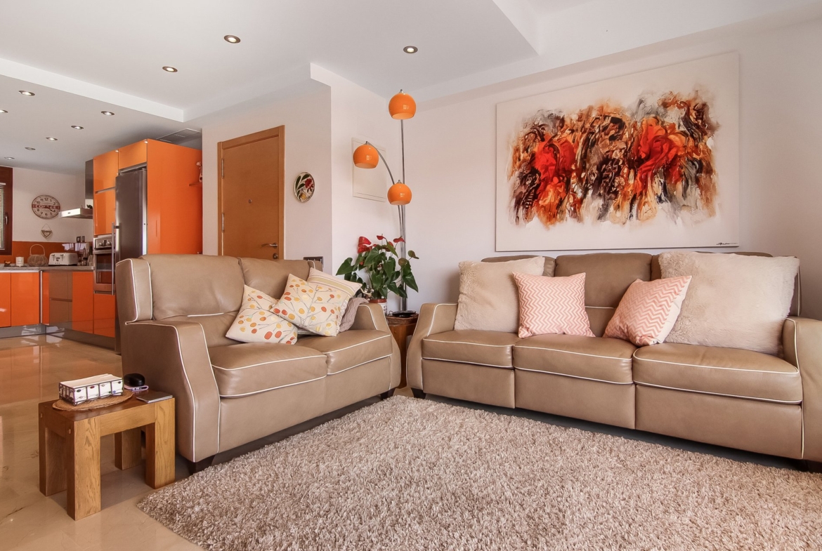 Beautiful apartment situated in the sought after «Jardines de Montemar» complex and just a 5 minute drive from the picturesque Moraira. The complex benefits from two outdoor pools, communal gardens and a heated indoor pool. The apartment on the top floor features a good size open plan living/dining room with integrated kitchen, 2 large double bedrooms (one with en-suite bathroom and dressing) and another family bathroom. The upper level of the apartment is currently used as an office but could be transformed into a third bedroom or a nice lounge area. This level also benefits from a private terrace. The apartment comes with an indoor parking and storage room.