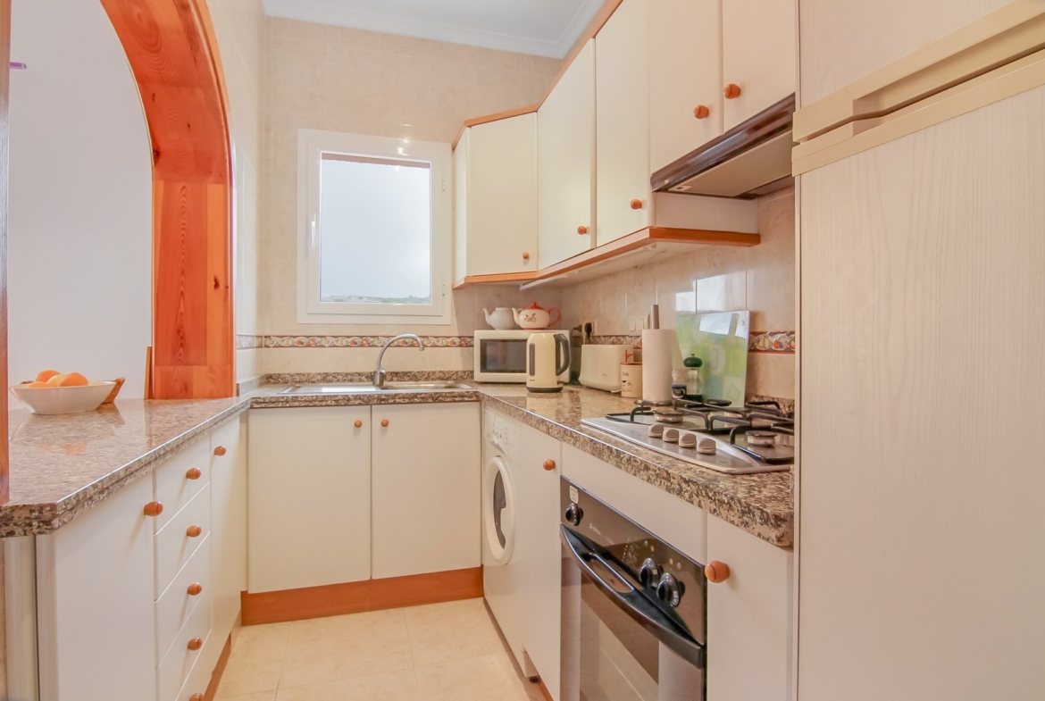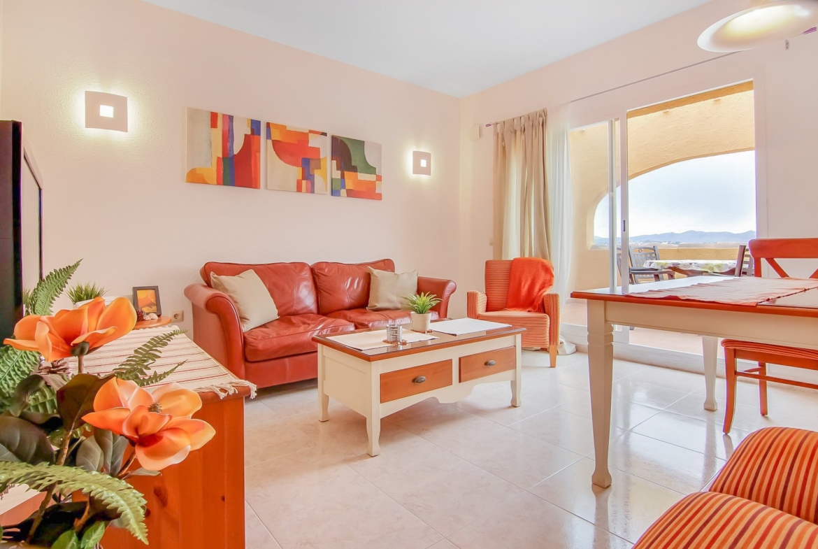PROPERTY OF THE MONTH – This very well presented, FULLY FURNISHED, apartment offers OUTSTANDING panoramic views of the countryside and mountains. The accommodation, which has been superbly maintained, includes 2 double bedrooms, living/dining room, kitchen, bathroom, utility cupboard and a generous part covered terrace which has un-interrupted panoramic views. The property benefits from hot and cold air conditioning, has ample communal parking and access to a fabulous communal swimming pool and bar. All furnishings are also negotiable.