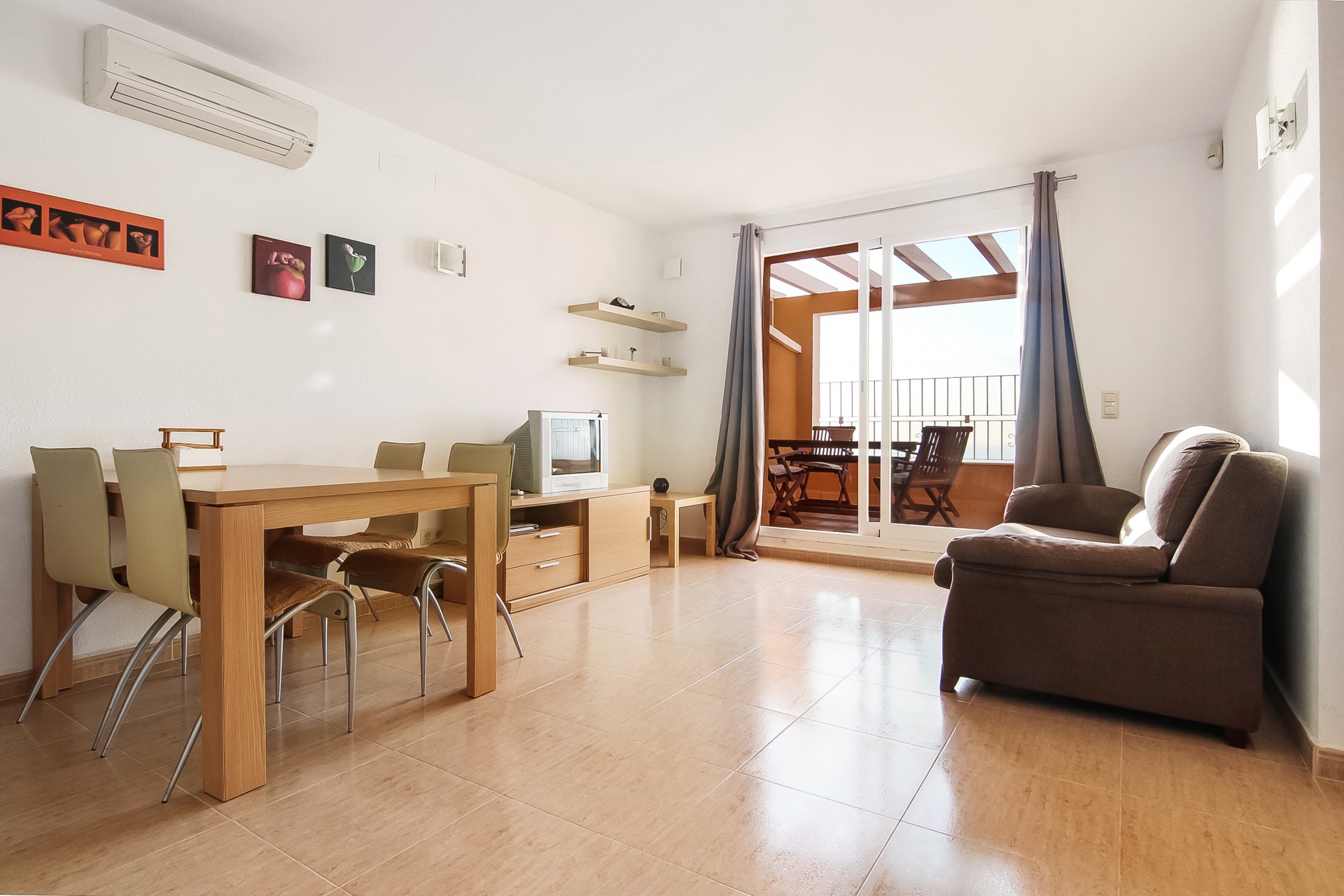 This 2-bedroom and 1-bathroom apartment has a unique panoramic view of the Mediterranean. Presented in a very high standard, this could provide an ideal holiday home, permanent residence with excellent rental potential. The apartment comes fully equipped with air conditioning, furniture and a telecom entry system for security. A couple of communal infinity pools helping you to relax and unwind. Supermarkets, bars and restaurants within close proximity or a short drive will bring you to both Moraira or Javea.