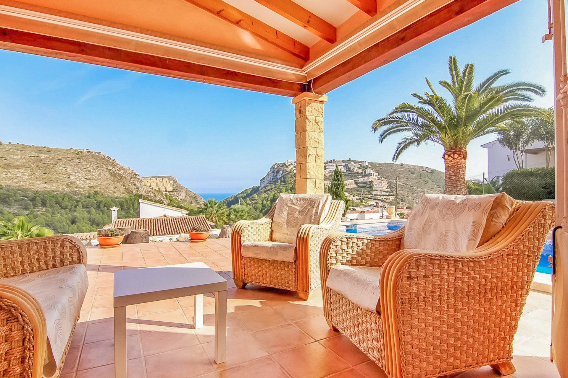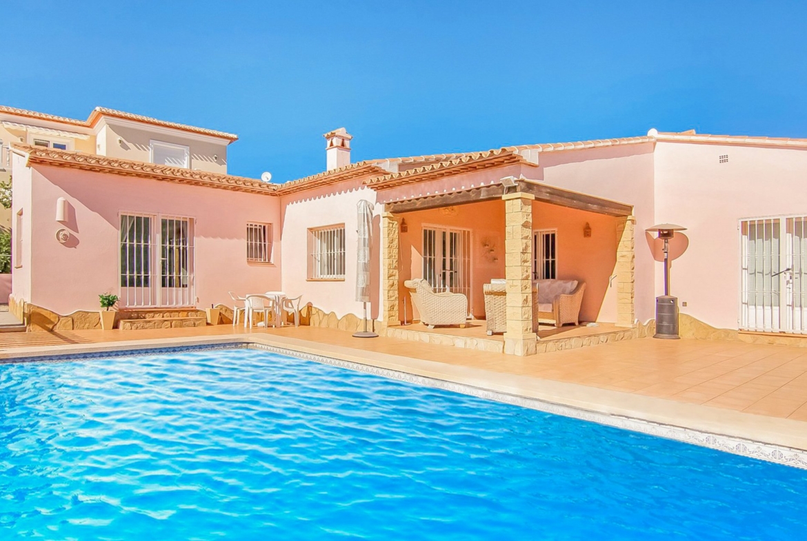 Stunning villa which stands on a entirely flat plot and only 15 minutes walk to El Portet. An immacuately maintained property, situated in a well sought after area the property also includes an independent guest apartment. The main building consists of: lounge/diner leading to open naya; fully fitted kitchen; 3 double bedrooms, one ensuite. A Guest bungalow consisting of: one double bedroom; kitchenette/lounge & shower room. The property has ample parking for up to 5 cars, an open naya, double glazing with rejas and a large pool and garden area.