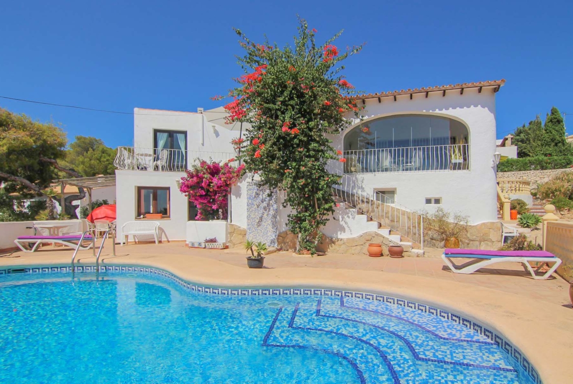 EXCLUSIVE TO BLUE SQUARE Detached villa situated in the premium area of “Pla del Mar” in Moraira and offering superb potential. While requiring an internal reform, the accommodation amounts to 208m2 on two levels and includes 5 bedrooms and 3 bathrooms. The elevated plot is 964m2 and enjoys great views over Moraira, to the coast and the Calpe rock “Penon d’Ifach”. On the main floor the accommodation includes a spacious living/dining room, a large enclosed Naya, kitchen, 3 bedrooms and 2 bathrooms. The separate lower level offers a living room, small kitchen, 2 bedrooms and a shower room. Early viewing of this desirable property is strongly recommended.
