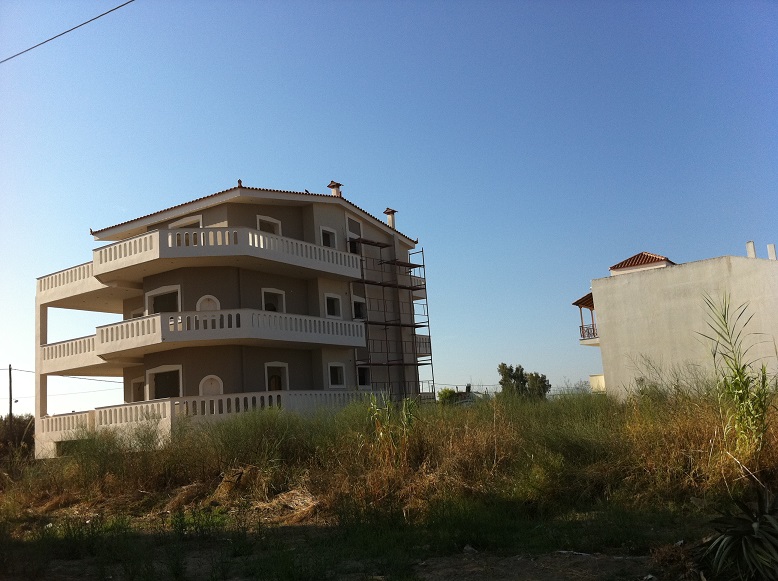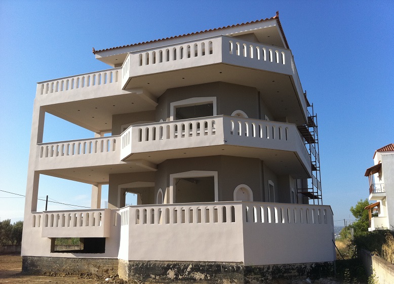 EVIA Agios Nikolaos, for sale unfinished apartment house of 420 sqm, 4 levels, basement – ground floor – 1st – 2nd floor, 6 bedrooms, built in 20005, 3 bathrooms, on a plot of 1,200 sq.m., panoramic view mountain – sea. Unfinished three-storey building consisting of 3 floors of 100 sq.m. and a 120 sq.m underground garage, unlimited panoramic view of the South Evoikos Gulf and Mount Dirfy. It is located very close to Chalkida -7 km and to the wonderful tourist resort of Lefkandi – 3 km, price 245.000 €
