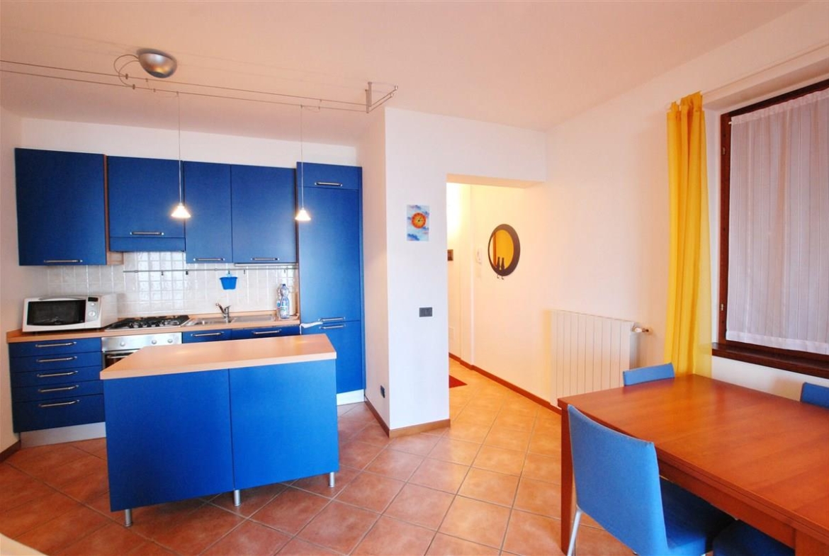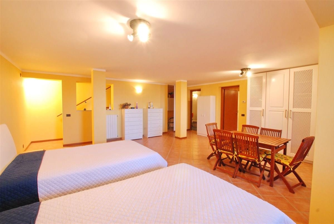 The residential complex was built in 2002. The total area of the apartment is 110 sq.m. The two-level apartment has a terrace, an exclusive garden and a parking space. On the ground floor are located – entrance hall, living room with small kitchen with access to the terrace from where you can admire the beautiful view of the lake, bathroom with shower. A spacious portico that can be used as a covered parking space, it can also be converted into another room. On the basement floor there are two rooms and a bathroom. Thermo-autonomous heating. The apartment is in excellent condition. The apartment has two bedrooms and two bathrooms. Energy consumption class – D. Specific annual heat consumption (kWh / m² year): 118.52.