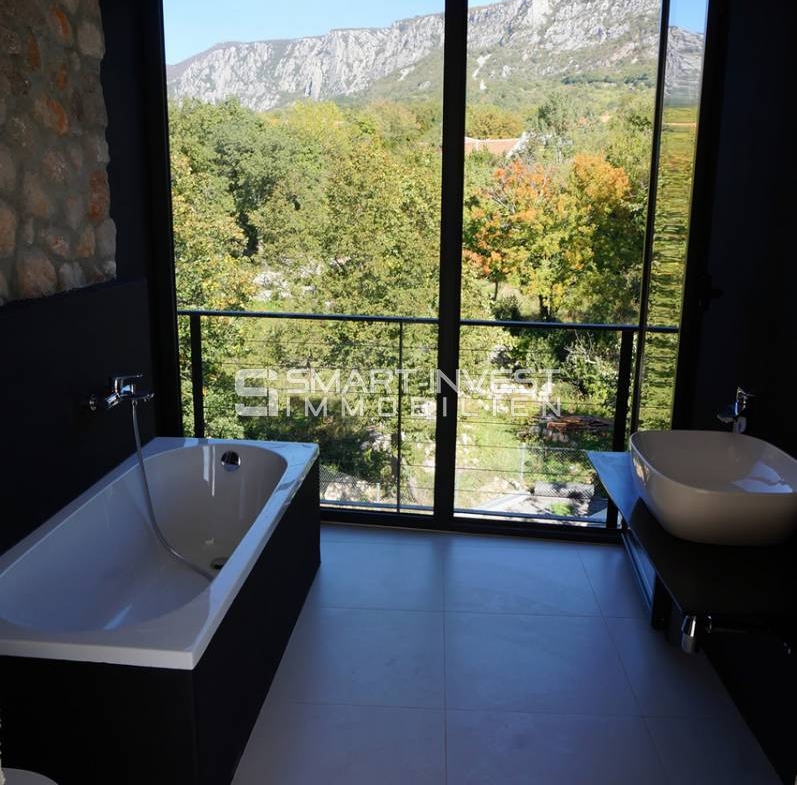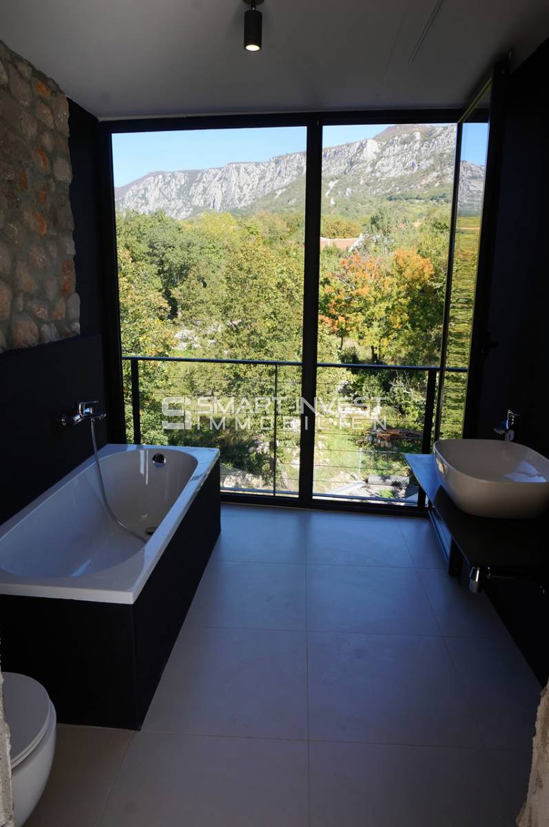 House is completely newly decorated in a beautiful style with lots of stone and glass surfaces.