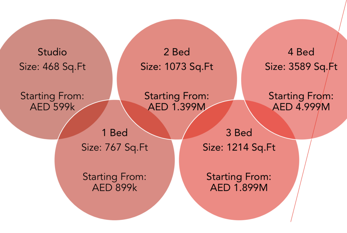 With prices starting from AED 599K, there are studios, 1BHK, 2BHK, 3BHK and 4BHK Penthouse available. It’s just 15 minutes to Dubai Mall, Palm, Mall of Emirates, and 4 minutes to Sheikh Zayed Road.