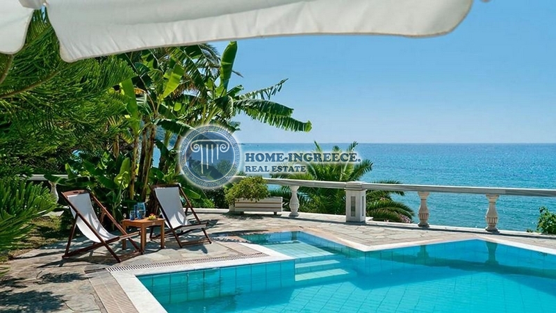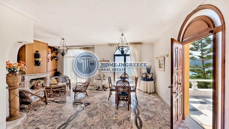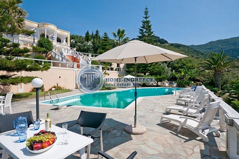 Main characteristics : The total area of 320 sq.m. The plot is 2800 sq.m. Year of Build 1994 Distance from the sea is 20 m. Distance to the airport is 32 km. The distance to the village is 3 km. The distance to the golf course is 37 km. The distance to the city of Corfu and the port is 35 km. Bedroom 8 Bathrooms 5 Levels 3. Description of the object: For sale is a unique villa by the sea in one of the most beautiful places of Corfu (Kerkyra). The villa was built to very high standards. This villa – a suitable place for investment – both for personal use, and for the development of tourism. Right on the beach, near the magnificent sandy beach, this is the most beautiful villa – a model of royal Italian architecture. The layout is ideally thought out and gives an opportunity for a quiet private pastime for both owners and their numerous guests. The two upper levels of the villa are at the disposal of the owners. Following their extravagant taste, the owners used the magnificent colored marble in the decoration of all rooms: the floors in the parlor and other rooms, and even on the huge terraces, and the stairs, and the apron of the kitchen, and the bathrooms, and the shells and fonts-everything is made from exclusive varieties of marble. From the spacious living room through the swinging French windows-doors you get to the front terrace with breathtaking sea views. The terrace is supported by classical slender columns, and a contrasting color pattern is painted along the front of the villa. Next to the living room is the main bedroom with a magnificent view of the sea with its own fully marble bathroom. The second bedroom on this floor also has its own bathroom, comfortable wardrobe closets, but its windows face the opposite side. The kitchen is finished in marble and equipped with all appliances. The owners have 2 more bedrooms with a shared bathroom and access to their own private terraces, where in the shade of lush greenery it is so nice to have a cup of coffee and relax a bit. On the lower level of the spacious pool of unusual shape are 2 identical guest apartments with living room-kitchen, bathroom and bedroom. each apartment has its own private terraces, access to the dining area, to the solarium and the pool area. From any point there are magnificent views of the sea. And for lovers of lunch in the open air, there is a dining area by the pool, on the terrace, in front of the house there is a parking for several cars, rising from the pool, you get on a double marble staircase, and a fountain is installed between its flights. The pool is very large, the depth to 3.5m by the pool has a summer bar area with a small kitchen, shower and toilet. The villa is built on a well-maintained plot of 2800 sq. M with a unique garden with many plants (cypresses, acres, palms and other trees guard the villa from prying eyes). There is automatic watering, electric gates