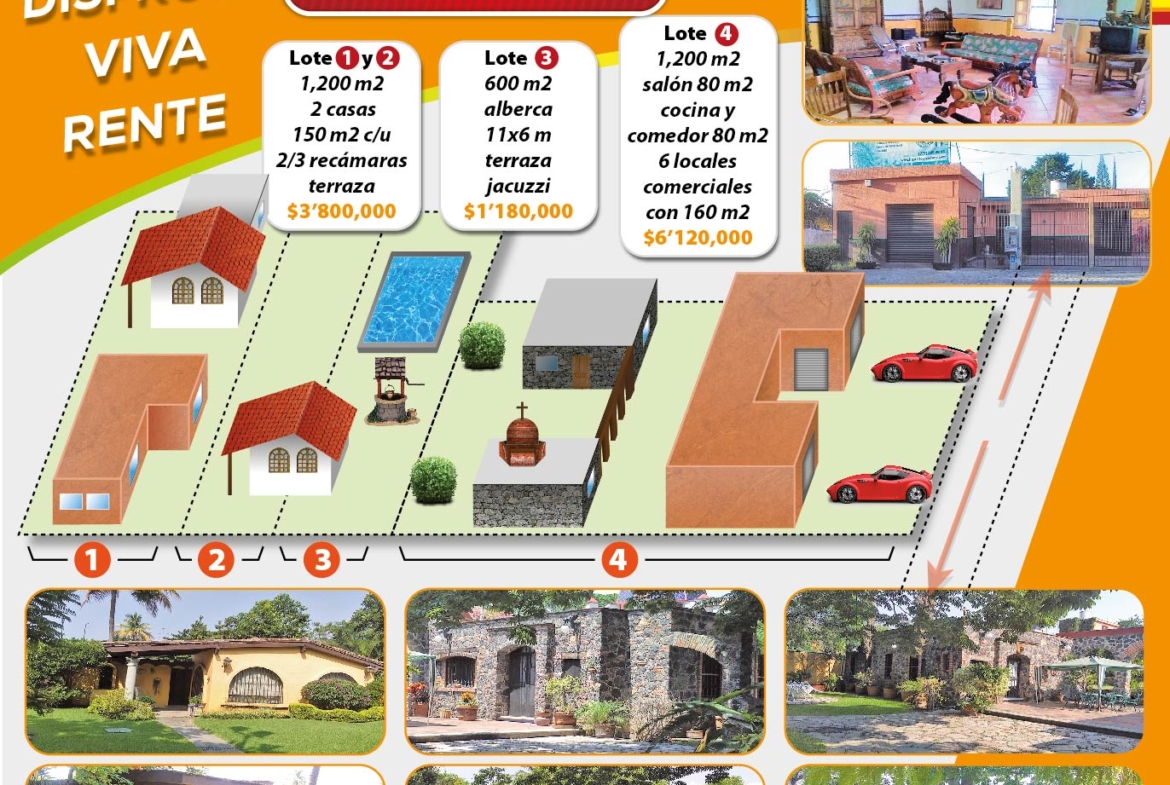 The state of Morelos is well known for its mild weather and has become a home to a large number of Canadian, American and European Residents. This secluded luxury property is located on a lovely cobblestone street just one block from main road, that leads to the nearest town, and a few minutes drive from Instituto Tecnológico de Estudios Superiores de Monterrey, Campus Cuernavaca. Located on 3200 Sq Mts. and surrounded by estate-height security walls and electric wire netting. Counts with two houses and 600 Sq Mts. of beautiful gardens, large and private pool plus Jacuzzi. Copper plumbing throughout, new electrical system, two cisterns and a watering system for the lawn and garden. Swimming pool and Jacuzzi count with a complete pool cleaning system. Outdoor terraces, fountain, lush tropical gardens with exotic fruit-bearing trees (mango, banana, key lime, orange, tangerine, pomegranate, guava, etc.). Comes totally furnished. Equipped with cable, phone and Internet. Property also counts with a great family room and huge kitchen with a formal dinning room. A huge kitchen and a formal dinning room for gathering with friends. Great family room has a smart design that can easily be renovated as a two bedroom complex. Property includes 200 sq mts of free land that can easily be turned into a sports court, an orchard or a green house plus a commercial building for any retail use. Excellent weather, price and location!