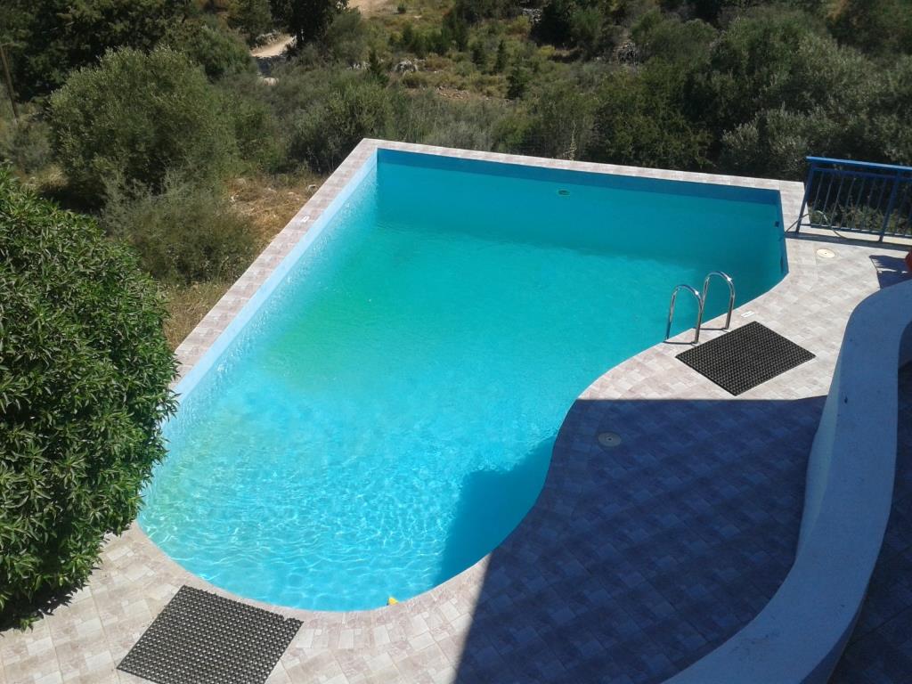 For sale a beautiful four bedrooms villa in Vamos village in Apokoronas with superb view and pool. This great opportunity is located in a completely private plot of 2600 m² in a beautiful green environment. The villa is 200 m² and it is consisted of a large sitting room downstairs with a fireplace. In a different level is located the spacious excellent quality kitchen with the dining area. In the same floor are located a WC and a storage place under the steps. From the dining area you have easy access to a big tiled veranda from where you can take your coffee and enjoying the spectacular view to the sea, to Souda bay and to the wild green forest. From the large living room you have access to the nice pool area that the place is offering. The shape of the pool is one of the strong characteristics that the particular property is offering. From the pool area you can to enjoy the unspoiled view to the sea. From the dining room the glass door leads to a veranda and the outside kitchen equipped with a barbecue and а Pompeii oven. In the first floor the house are located three really big bedrooms the main of them with an en-suite shower room, all the bedrooms of this house are offering spacious wardrobes. In the same floor there is another bathroom that is shared only two bedrooms. By some steps you can go to the spacious full tiled roof terrace that the place is offering and enjoy the really standing view that is really second to none to the sea to the forest to the different villages around and to the White Mountains. Down on the ground level, steps lead down to the basement where there is a fourth bedroom with independent entrance and en-suite bathroom. Downstairs are also located 2 x 1000 liters water tanks, a 1000 liters oil tank, wooden slat shelving and lots of storage space. Here there is also the door to the pool pump room which affords further storage space. The property has solar and electric water heating, oil-fired central heating, blue aluminum doors, windows, shutters and railings, insect screens and double glazing. The EOT License is COMPLETED and can provide an excellent income in the summer months through holiday rentals.
