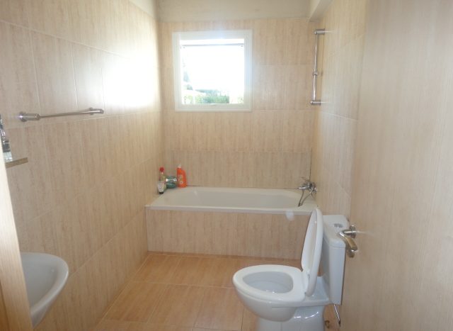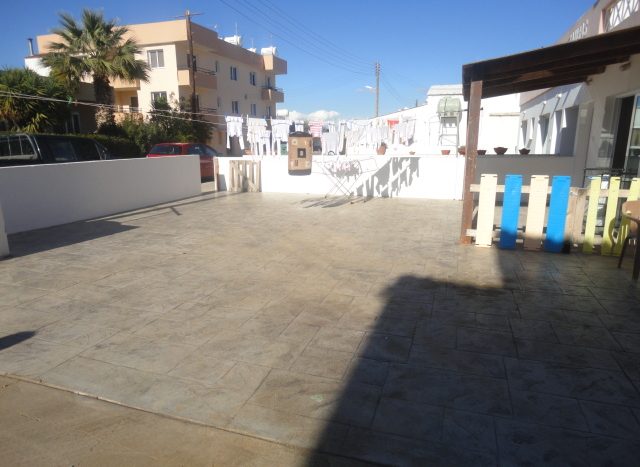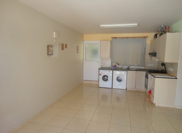 One bedroom ground floor apartment with big yard and a communal swimming pool on the roof of the building is available for sale in Xylofagou. The property consists of a living room along with an open plan kitchen, one bedroom and one bathroom. Title deeds available.
