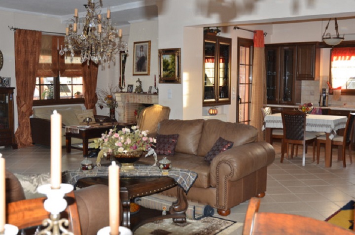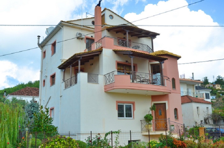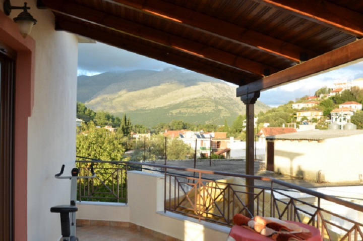 For sale house with total area of 325 sq.m. in Filiates, Thesprotia. Living area of the house is 145 sq.m. with 40 sq.m. balconies, shop of 90 sq.m., semi basement of 90 sq.m. of particular architecture and aesthetics. With 3 bedrooms, 2 bathrooms, fireplace, solar heating, boiler, autonomous heating, with panoramic views of the mountains and the town of Filiates, distance from the sea 17 km. The semi basement has a separate entrance and can be used as a separate housing. The property is located on a plot of 244 sq.m. It has a garden and parking and located in the center of Filiates.