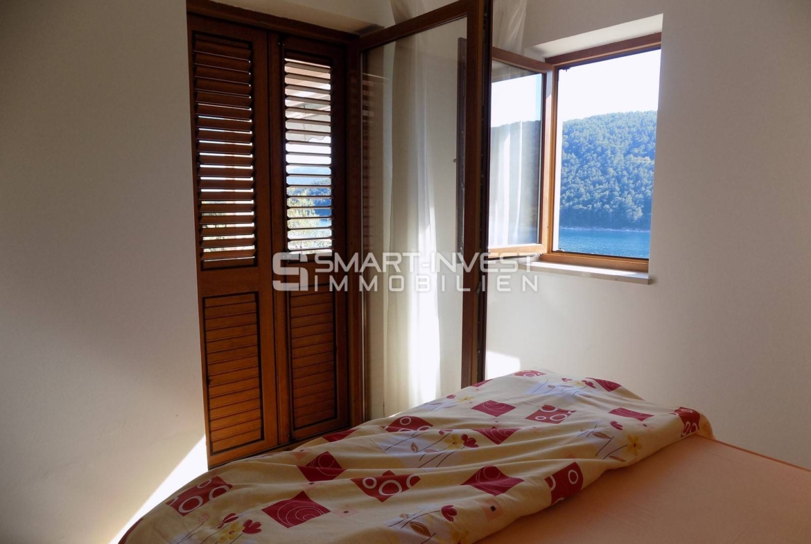 Sunny and bright, and from the kitchen, dining room, living room and bedroom there is a view of the clear blue sea and untouched nature leading to a staircase of no more than 50 m. A courtyard decorated in a Mediterranean style with lots of olives and plants.