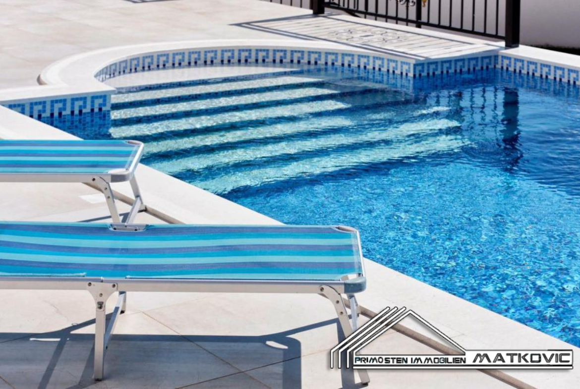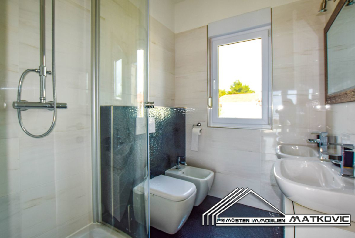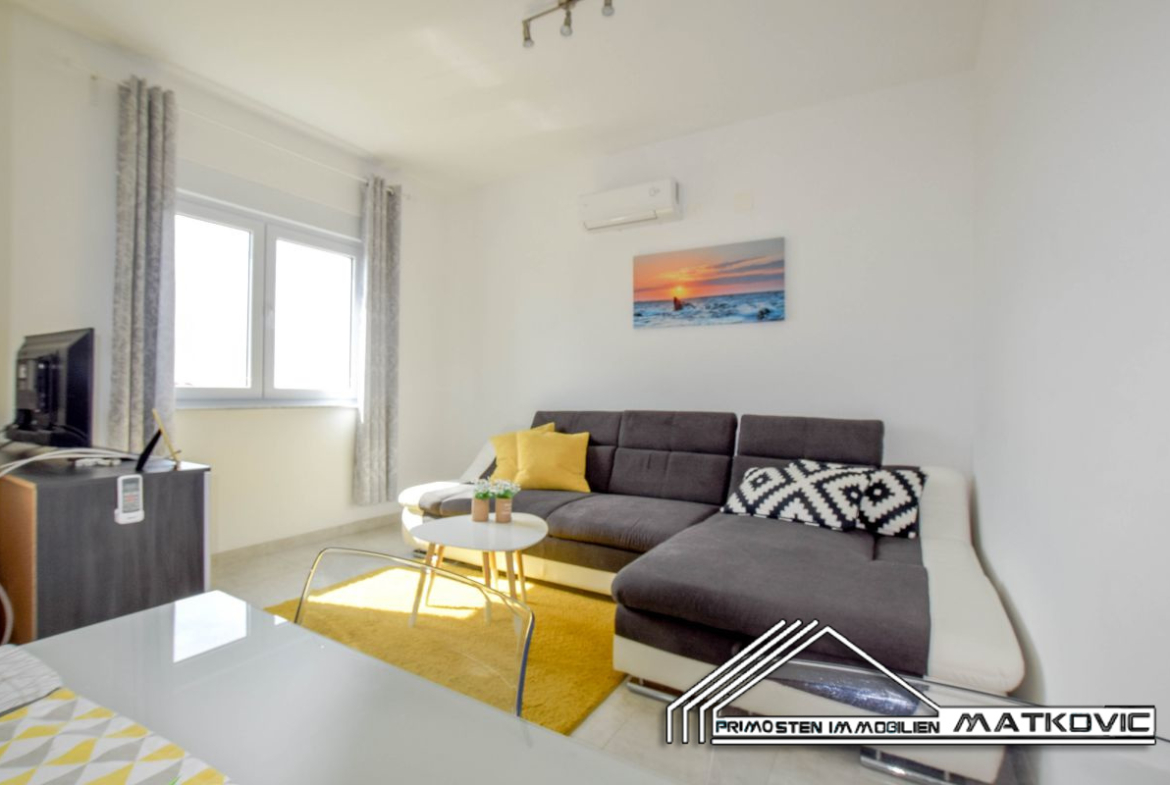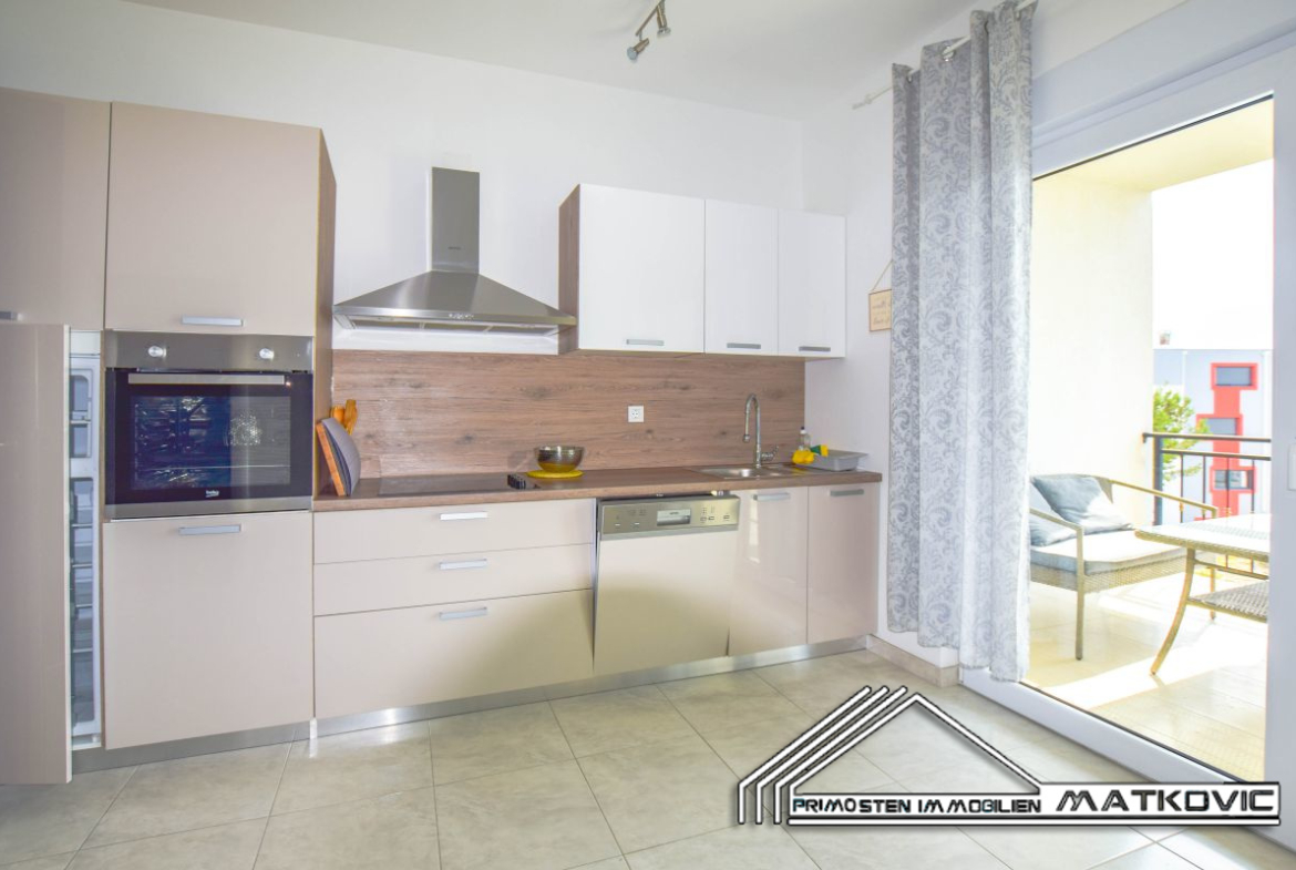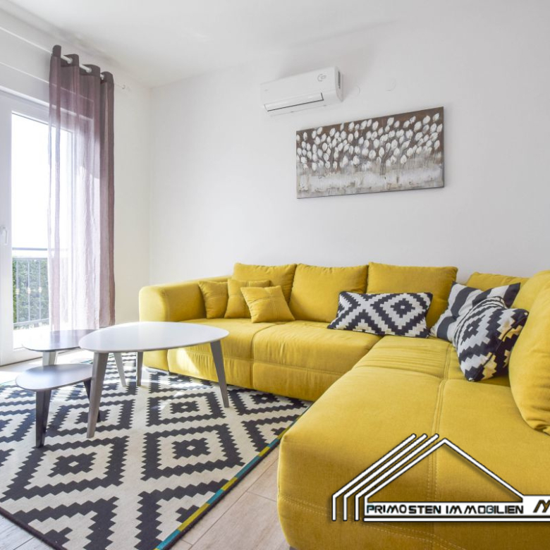 Newly built luxury apartment located on the first floor of a residential building, and it has a total living area of 59 m². It consists of a living room with kitchen wich leads to the balcony, bedroom and a bathroom. The apartment has a parking space and a common pool of ca. 24 m². The apartment is fully furnished and air-conditioned. Distance from town center and beach is ca. 600m.