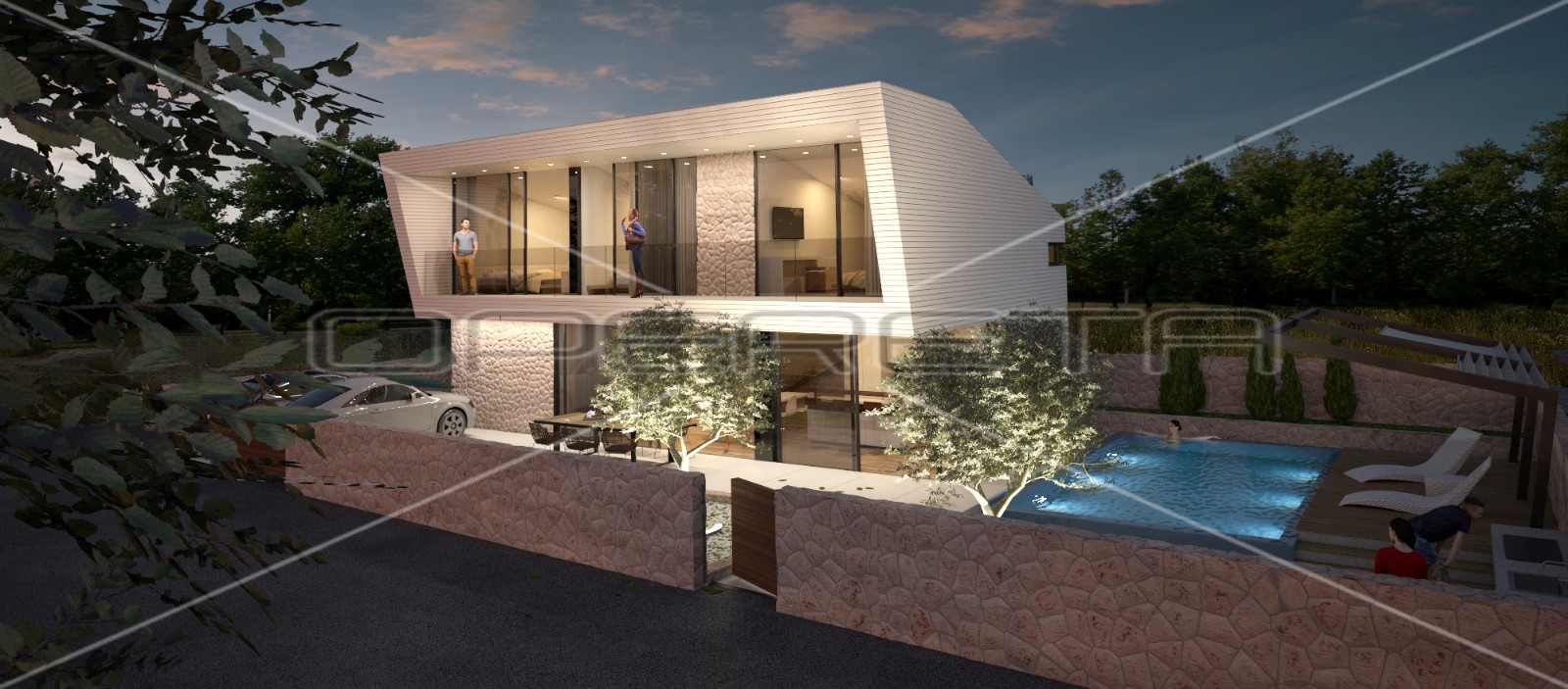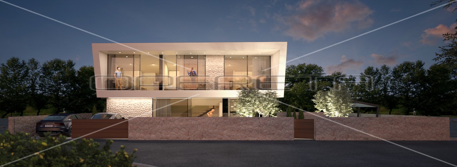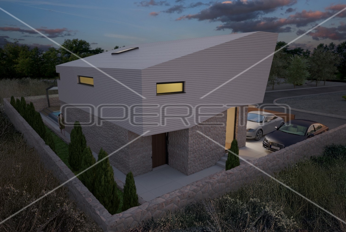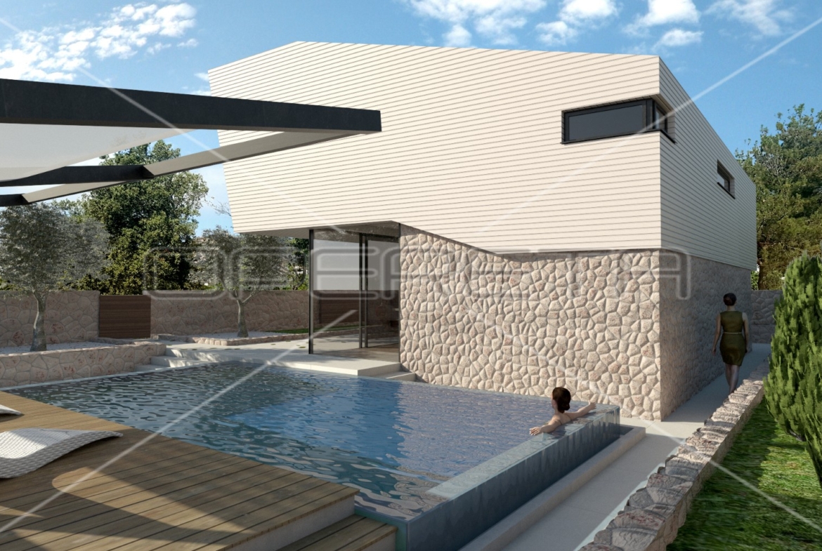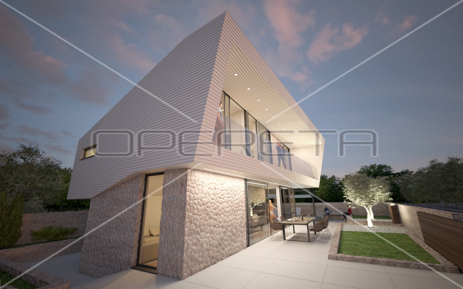 This villa is located on the south side of Novalja. The villa will consist of 3 bedrooms, open concept of kitchen, dining room and the living room, 3 bathrooms and one additional toilet. The front of the villa is almost entirely made as a glass wall that will provide a lot of sunshine, and the direction towards the sea, along with the loggia on the upper floor, will also provide an excellent view.