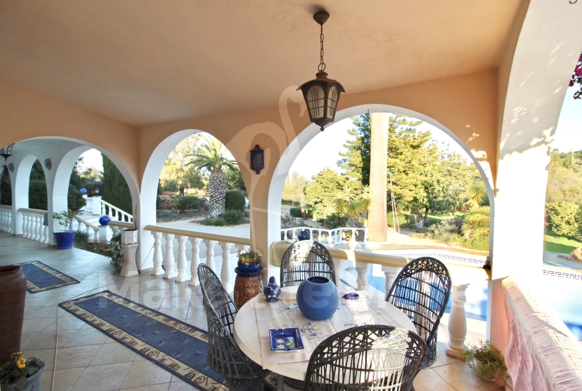 Complete with gas central heating on the ground floor and air conditioning units on the first floor. This well-designed villa is presented in immaculate condition with lots of wonderful features from the pretty arches covered in bougainvillea, good natural light throughout and the large unusually shaped swimming pool. The property comprises of 4 double bedrooms on the first floor with access to terraces. Full and spacious shower room and gallery library at the top of the staircase. The ground floor has two lounge areas with wood burner, a formal dining room with access to the downstairs shower room which also leads out to the pool area. The kitchen is fitted and equipped and leads out to the back terrace with ample room for dining and lounging. There is a workshop under the terrace and the whole garden in fenced and secured with an electric entrance gate. A truly spectacular property!