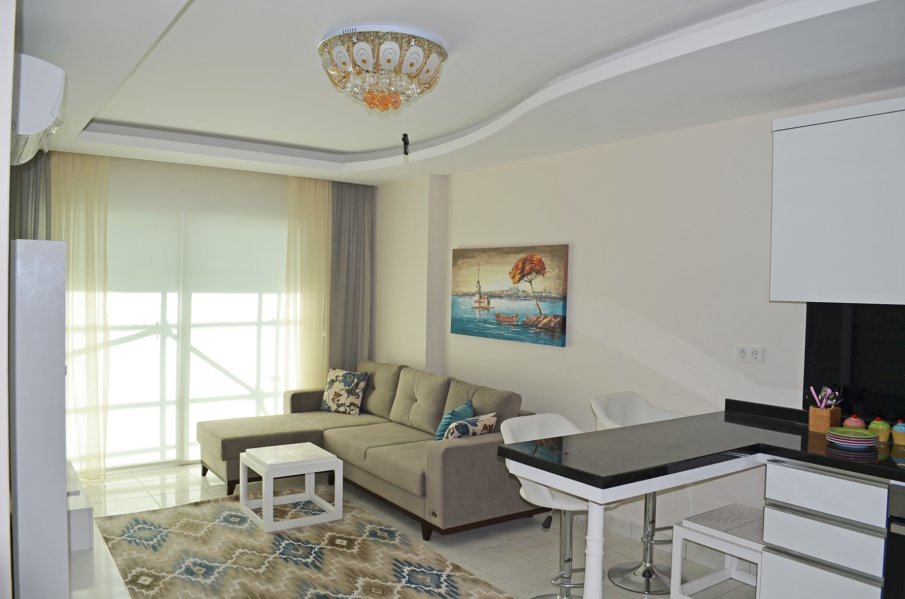 Modern residential complex is well located in the central part of the modern resort area of Alanya, Mahmutlar. The beautiful beach and landscaped promenade are just 550 meters from the residence.