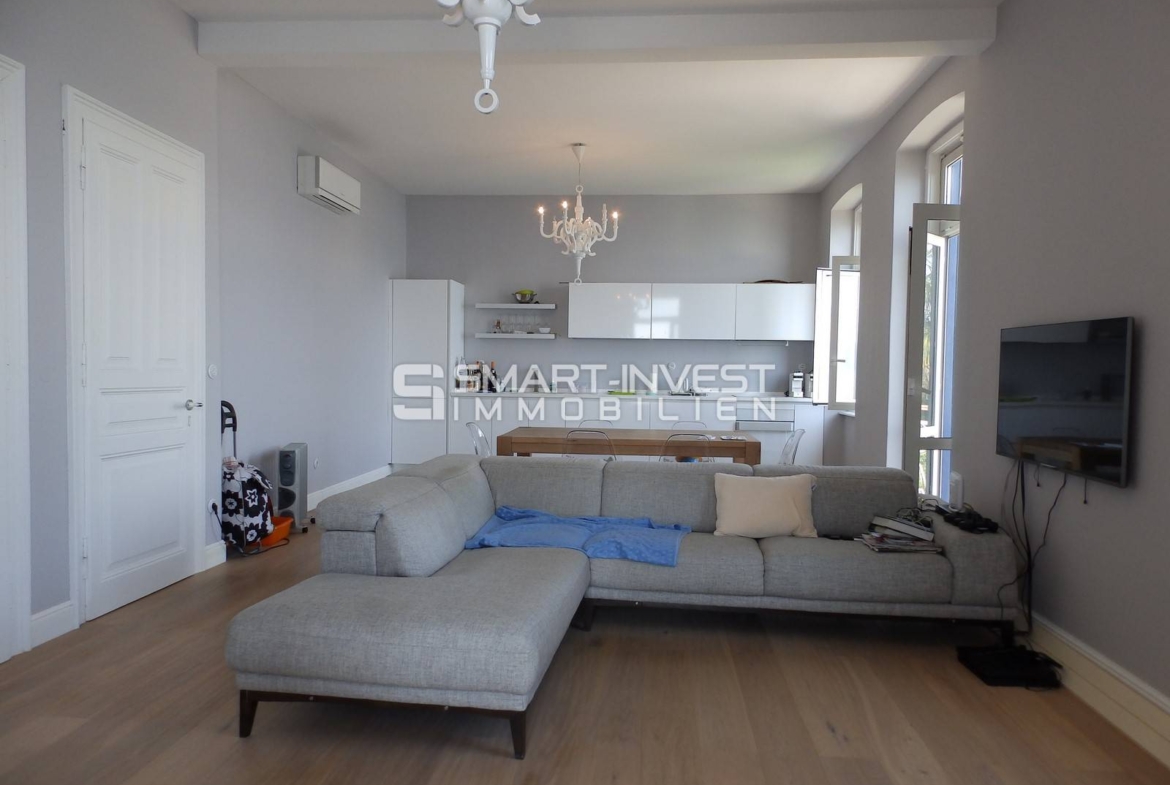 The apartment is completely renovated and superbly furnished, it has lovely terraces with phenomenal sea view, landscaped garden of 100 sqm, and it is located on a top location right to the sea and seaside promenade.