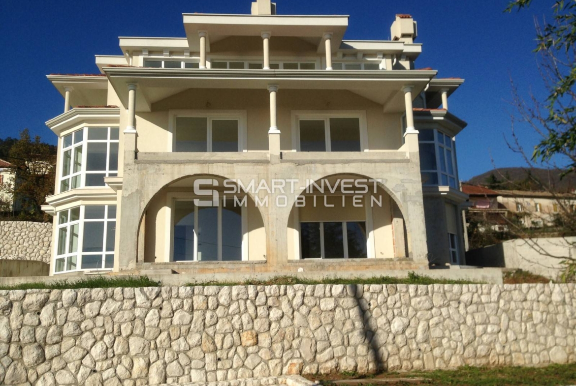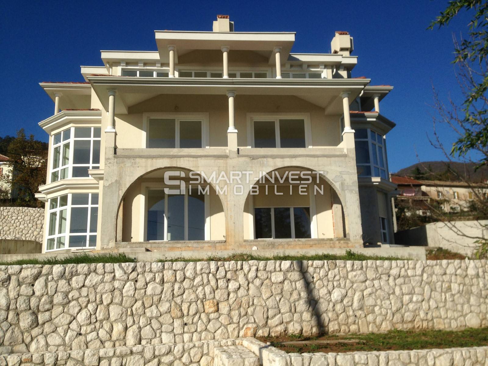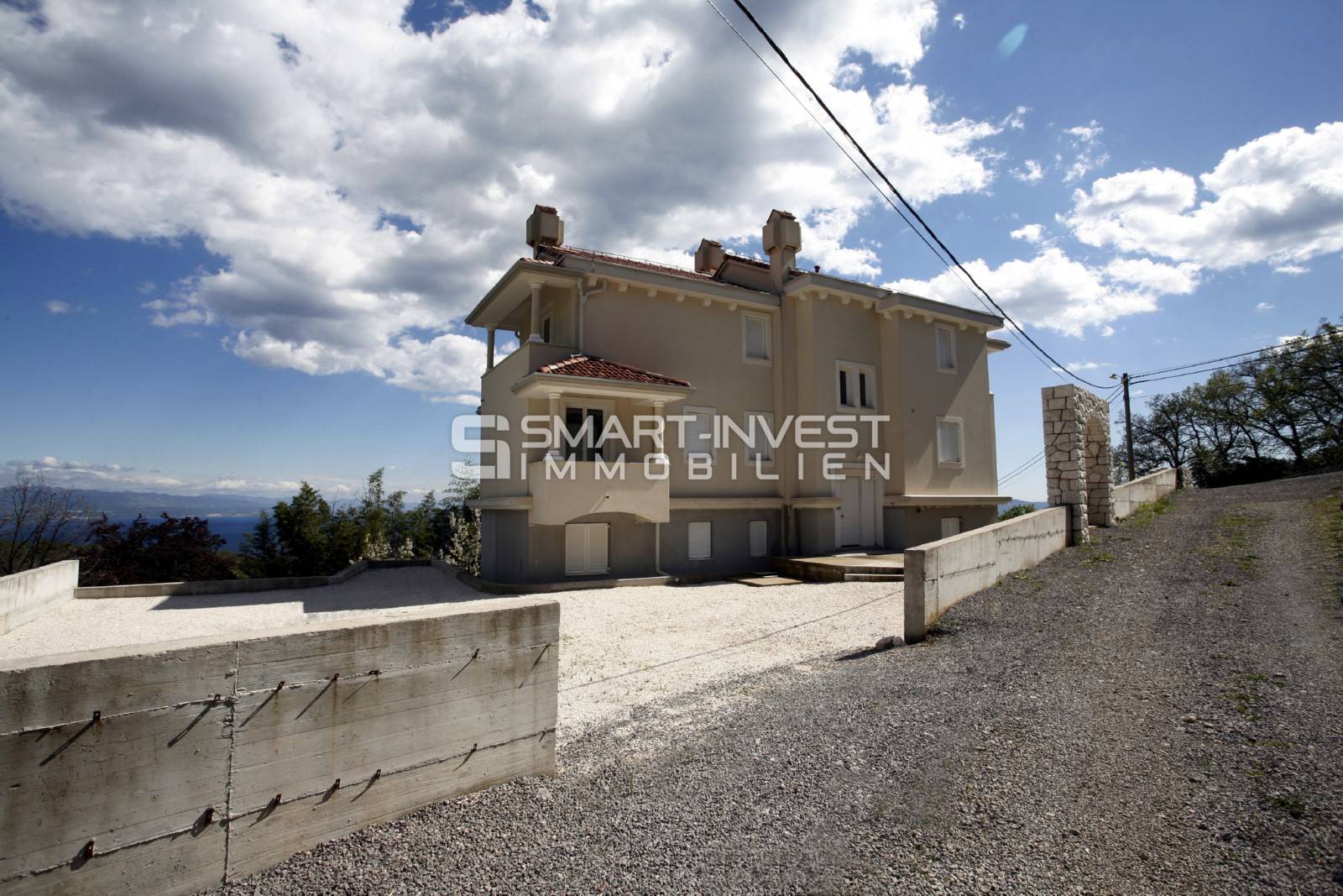 OPATIJA – IČIĆI, beautiful new villa gross area of 720 sqm (550 sqm net area). The house has 9 parking spaces inside the plot of the villa, and an additional three parking spaces along the south side of the building. As part of the groomed and landscaped garden is a swimming pool and garden house with barbecue. The building used the highest quality materials, exterior doors and windows are made with the brand Internorm and color of the facade is Brillante. The villa consists of three luxury apartments: The apartment on the ground floor: 139.41 sqm – consists of a spacious living room, dining room, kitchen, two bathrooms, two bedrooms, dressing rooms, toilet and a terrace. Apartment on the first floor: 144.35 sqm – consists of a spacious living room, dining room, kitchen, pantry, two bedrooms, toilet, bathroom, dressing room and two balconies (south and north). In the basement there is a laundry room, storage room, sauna, fitness room, boiler room and relax area. OUTSTANDING REAL ESTATE IN GREEN SLOPES OF MOUNTAIN UCKA WITH PANORAMIC VIEW ON KVARNER BAY.