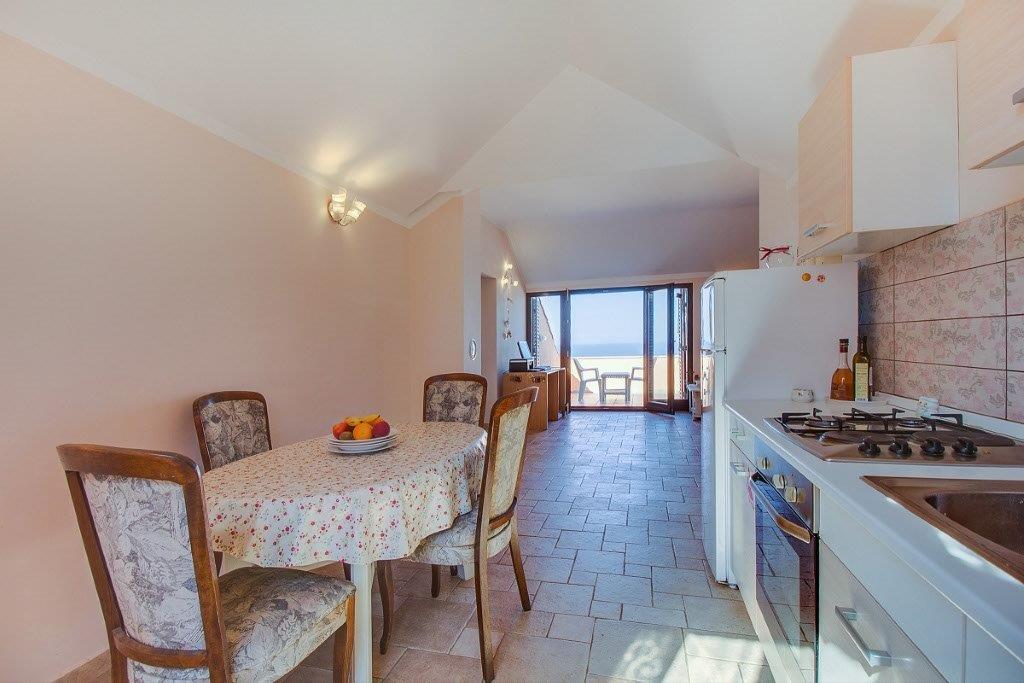 The apartment is located in the center of Mali Lošinj and completely occupies the last floor of an urban villa. It consists of 2 bedrooms, living room with dining room, kitchen, bathroom and 2 terraces. The apartment was completely renovated in 2013 with top quality natural materials and complete noise insulation. Also, in 2017 it has an extended terrace throughout the apartment and has an open panoramic view of the sea and the islands. The apartment is air-conditioned and in each room are wooden oak parquet floors, while the bathrooms and kitchens have high quality tiles. The apartment has one parking space and a landscaped garden of 69 m2. The sea takes only 3 minutes of light walks.