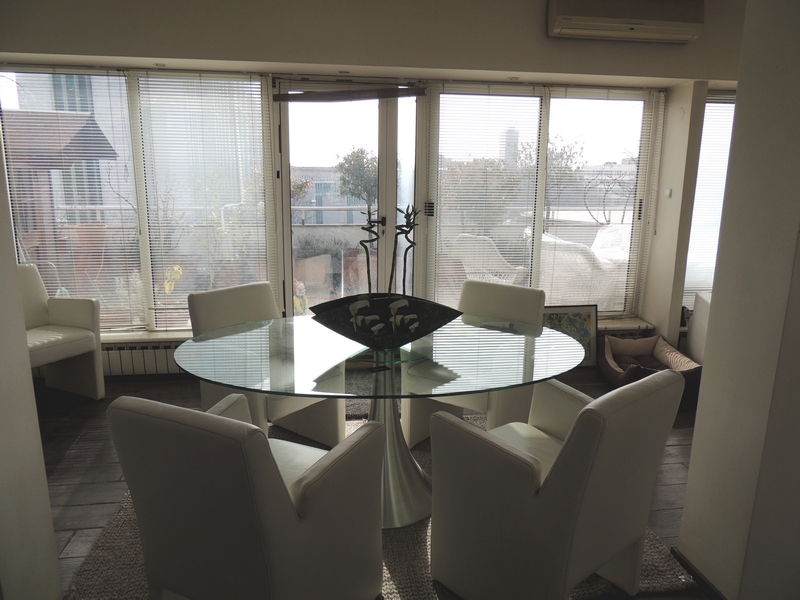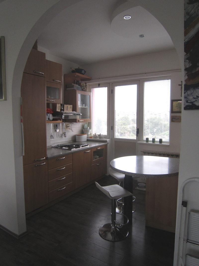 The last adaptation was made in 2011. New bathrooms, thermal insulation and floors were laid. Throughout the apartment there is a glass rooftop and full of light. Orientation of the apartment is north and south. The doors are protruding and protruding. It has gas heating and air conditioning.