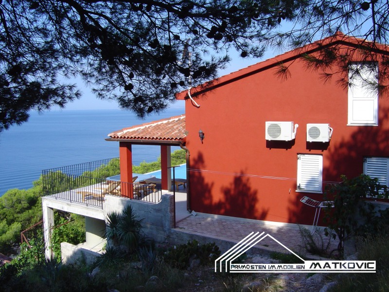 House near Primosten completely renovated with a size of 120 m², built on a plot with a size of 980 m². It consists of a living room, kitchen, dining room, living room with terrace 28 m², on the terrace is a large swimming pool with a magnificent view of the open sea. The house has three bedrooms, each with a bathroom. On the lower part of the terrain is double garage 45 m² which is connected to electricity and water. Below the house is a basement and next to the house is barbecue with storage room. Distance from the sea 70m.