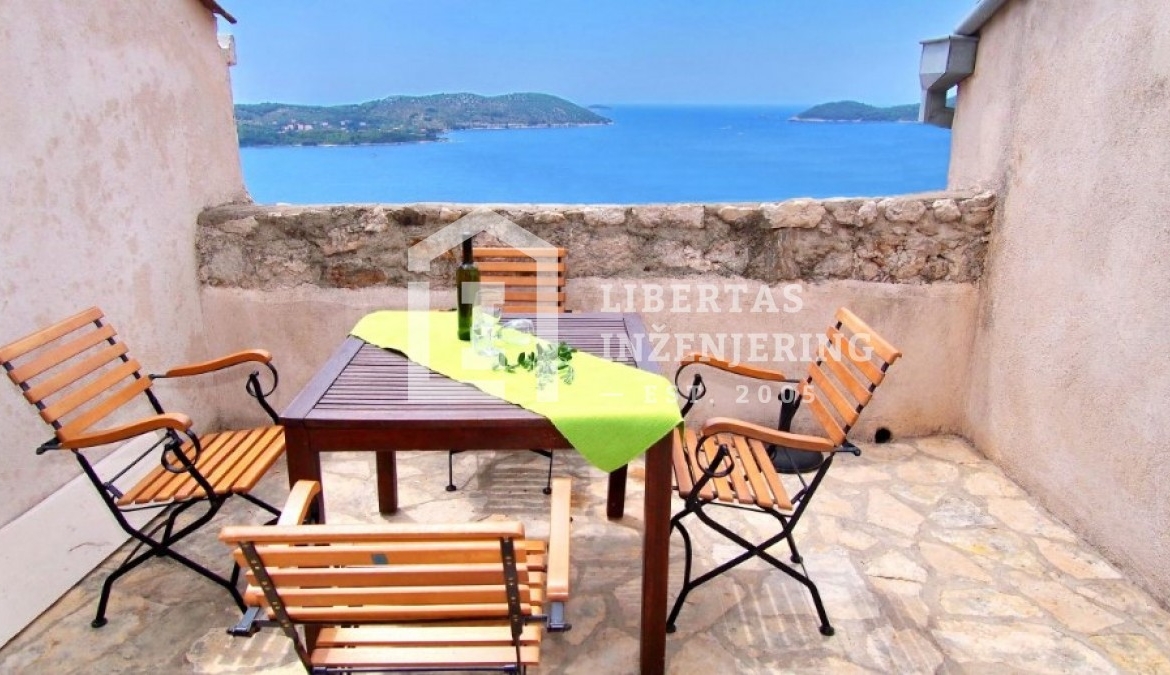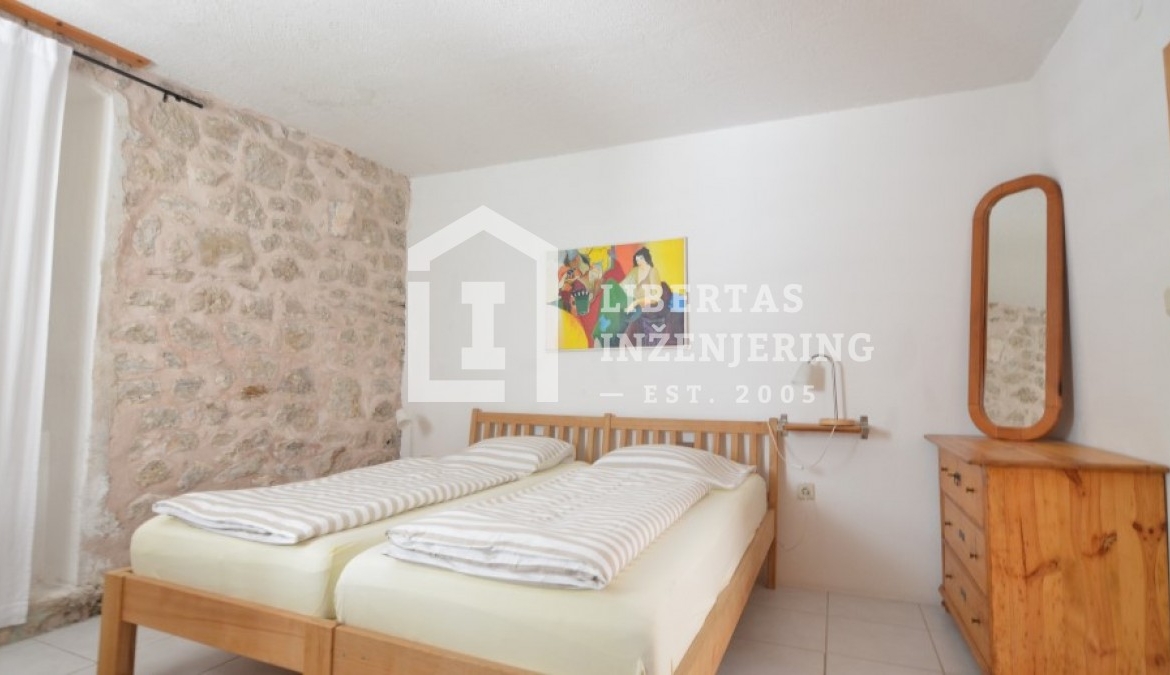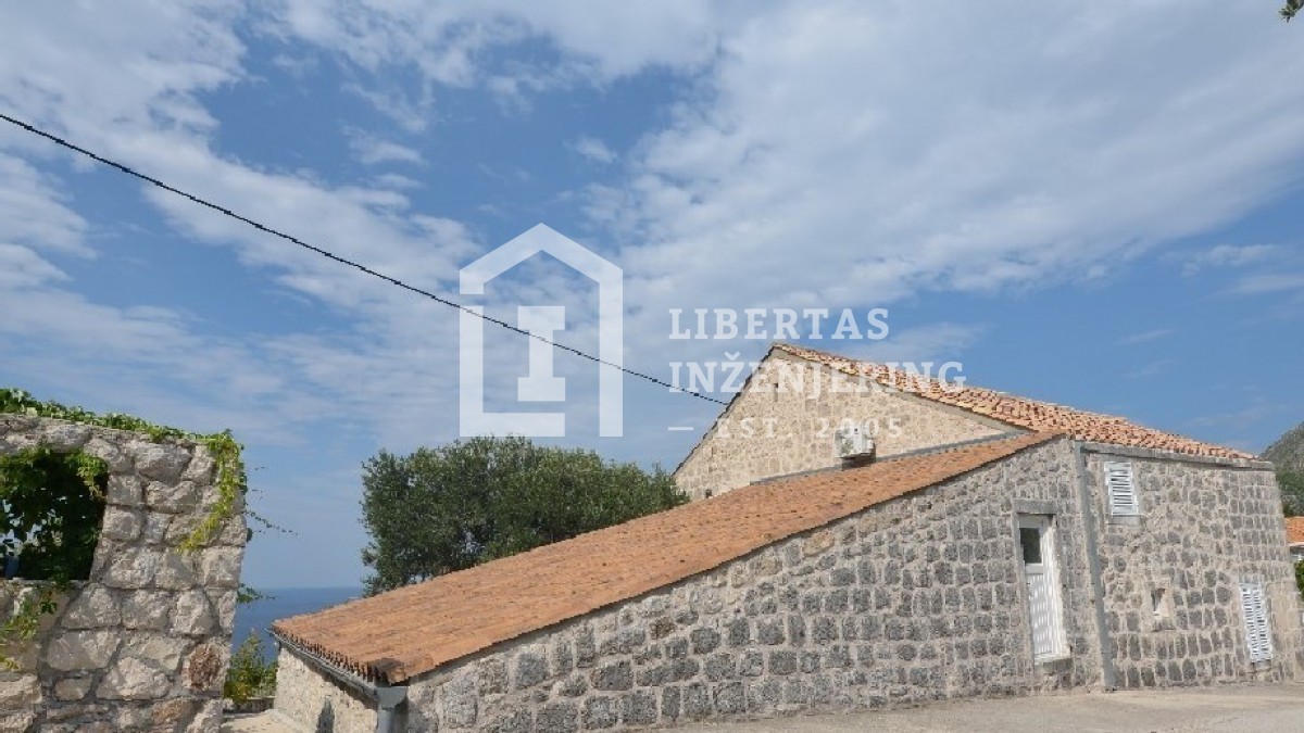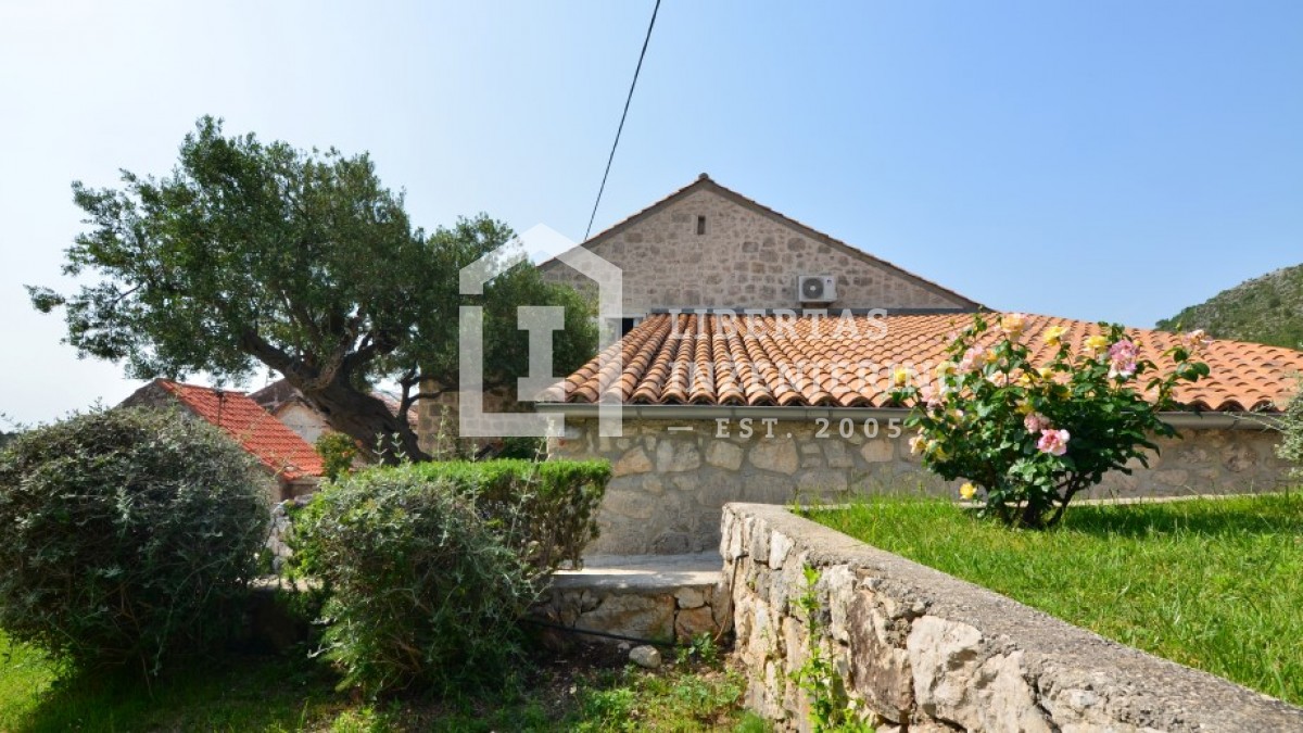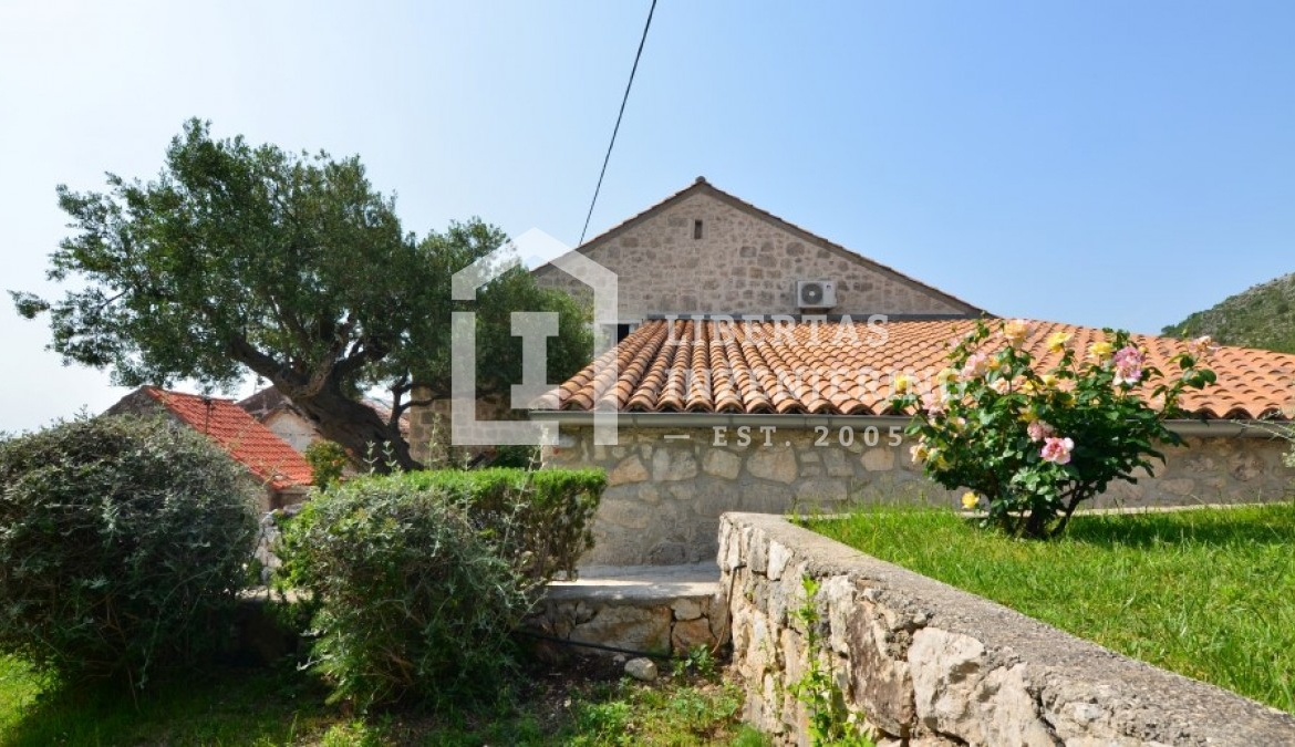 This renovated stone house is located in the heart of Orašac, in Dubrovačko primorje. Only 30 minutes drive time to the busy town center of Dubrovnik is what separates you from the peace and quiet of this property, with an open and panoramic sea view. Overlooking the highway, with secured road access and private parking. Living area of 209m2 spreads out over two floors completely designed in the Mediteranian style (stone, wood, olive tree, etc.). The grounds cover 259m2 with a garden and stone terraces. Good property for a vacation home, or for tourist renting / VACATION HOME