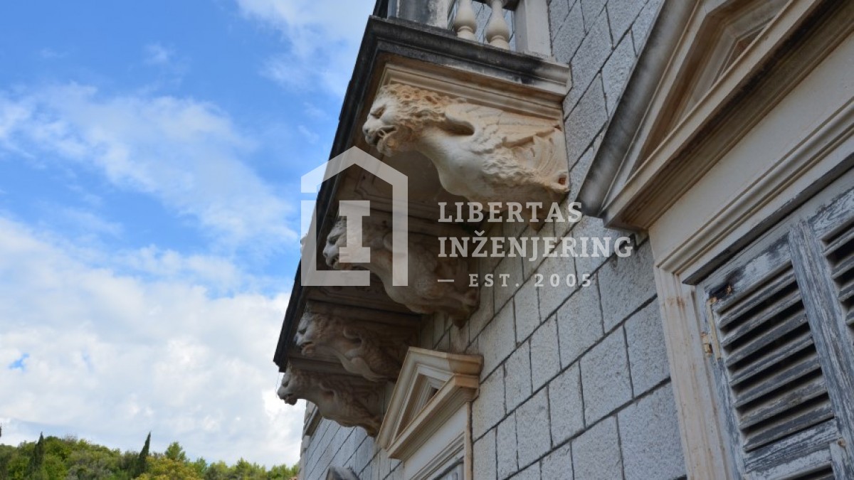 This “turn of the century” stone palace for renovation, with a spacious garden is located on Šipan, one of the Elafiti islands, next to Dubrovnik. Extraordinary property either for a private residence or for tourism as an exclusive hotel. The main building spreads out over 800m2 of space, divided on 4 floors- high ceilings, open sea view, terraces, located in a green zone- everything that insures maximal comfort. Additional buildings are located in the back. Surrounded with 2330m2 of garden, secures more then enough space for additional amenities- swimming pool, parking, walkways. Central location in town, with close proximity to the promenade, beach, restaurants and bars. Secured infrastructure with good boat connections to Dubrovnik. Build in 1908, maintains many character features- stone details, large and imposing staircase with a lift shaft, stone arches, very bright and sunny. Even doe it demands a complete renovation, everything stated shows that this is a / UNIQUE PROPERTY