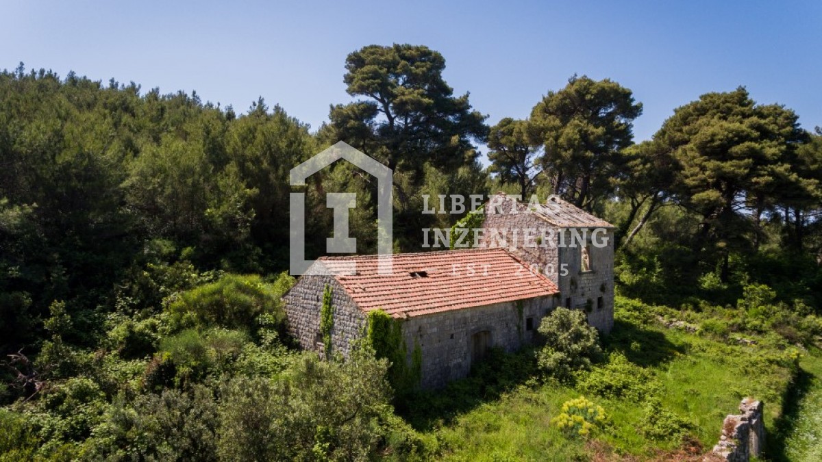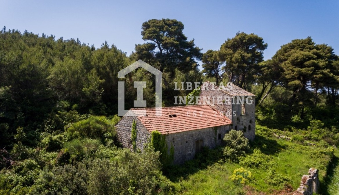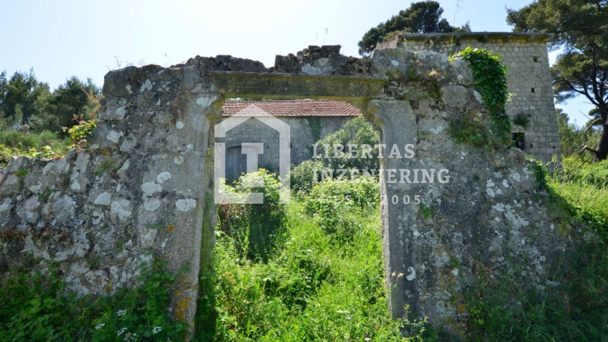 This stone villa for complete renovation represents a unique property on the market. It is located in one of the most tourist developed islands in Croatia, Lopud. One of the Elafiti chain islands, in close proximity to Dubrovnik, with regular daily boat lines, with several hotels, a series of restaurants and bars. On the other hand, the position of the property in the heart of the island, in a green zone, with no neighbouring buildings secures absolute peace and quiet. The villa spreads out over cca 200m2 of living area on two floors, and is surrounded with 590m2 of garden. Open and panoramic view, bathed in sun. Even though it requires renovation, stabile outer structure, clean title papers and road access secure fast reconstruction and return to its old glory, with complete adaptation to the wants and needs of the new owner. Secured road access, water and electricity near by / RARITY