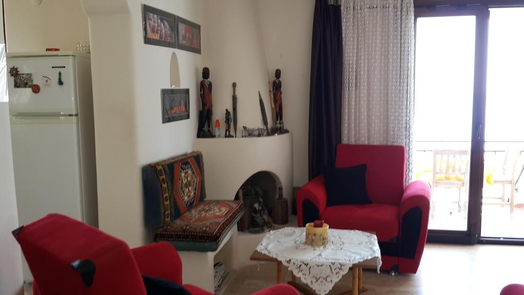 away or you can hop onto the local dolmus. The villa, which is air-conditioned has three double bedrooms one with en-suite and a separate family bathroom. three of the bedrooms open onto a large balcony, here you can spend a lazy hour or two (or three) sitting with a glass of your favourite tipple and watching the beautiful sun set. The kitchen has full facilities including large fridge freezer, microwave, oven , dishwasher and washing machine. The lounge is open plan and has a television .