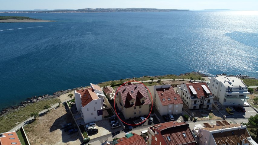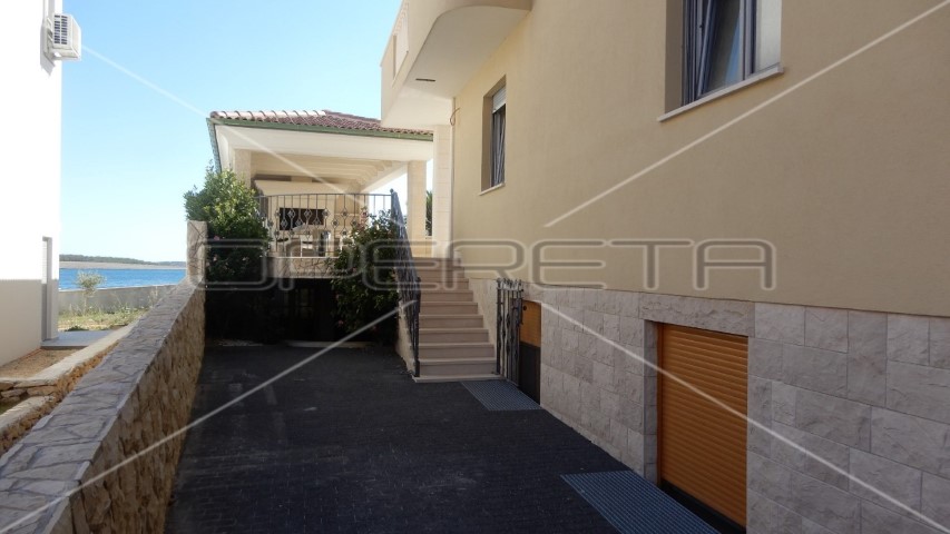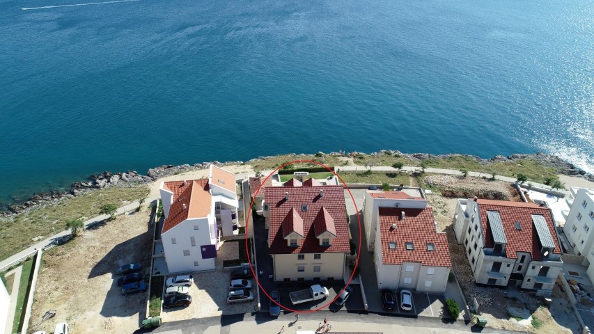 The attractive four bedroom apartment in Povljana is located first row to the sea. Luxury apartment located in an exceptional location. The apartment is located in a residential building consisting of basement, ground floor, first floor, and attic. It is located on the 1st floor of a residential building. It consists of 2 corridors, living room with kitchen and dining room, 2 bedrooms, children’s bedrooms, 2 bathrooms, balcony and terrace, and is fully air conditioned. From the large terraces there is no distracting view of the beautiful sea, perfect for enjoying the summer days. The apartment also has a parking space in the yard. The choice of location itself and top quality construction as well as the design of the building with elements of modern design, is ideal for a relaxed holiday. The apartment’s surface and interior layout, the spacious terrace overlooking the sea and the outdoor pool will allow you a relaxed vacation in your own surroundings. The exterior carpentry is of superior PVC, apparently exterior aluminum (not heated) inside the wood. Top quality ceramics, marble stairs, walls in the bathroom are covered with decorative stone. Great location, first row to the sea, leaving the yard on the promenade that separates you from the sea. Nearby are two beaches.