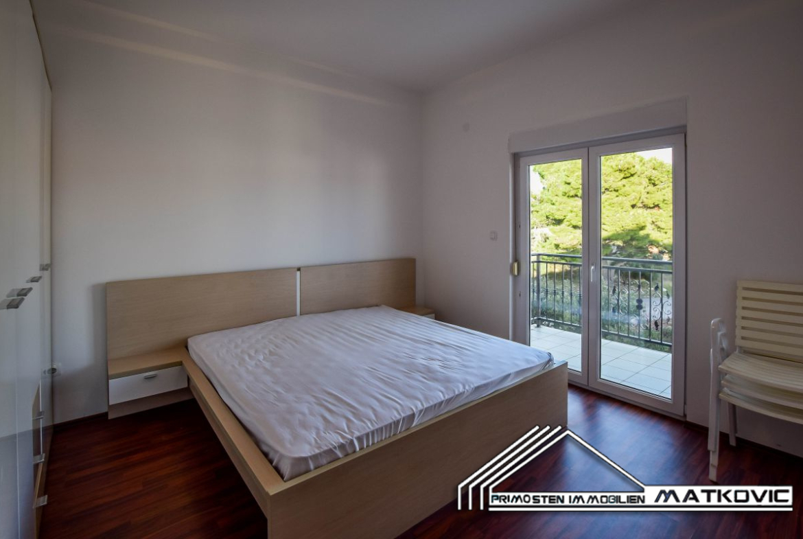 The 76 m² three bedroom apartment in Primosten, is on the first floor of a high-quality multi-family house and in a sought after location. It has a sea view to the open sea and is furnished to a high standard. The premises are divided into a open plan kitchen, bedroom, guest room, and a bathroom. The bedroom has a balcony with southeast orientation. The open plan kitchen and the guest room are extended by the spacious terrace with south exposure and sea view. The large communal swimming pool completes it to a top property for a bargain price. The well-known beach of Primosten, restaurants, cafes and shops are within walking distance. The distance to the nearest airport is 35 km.