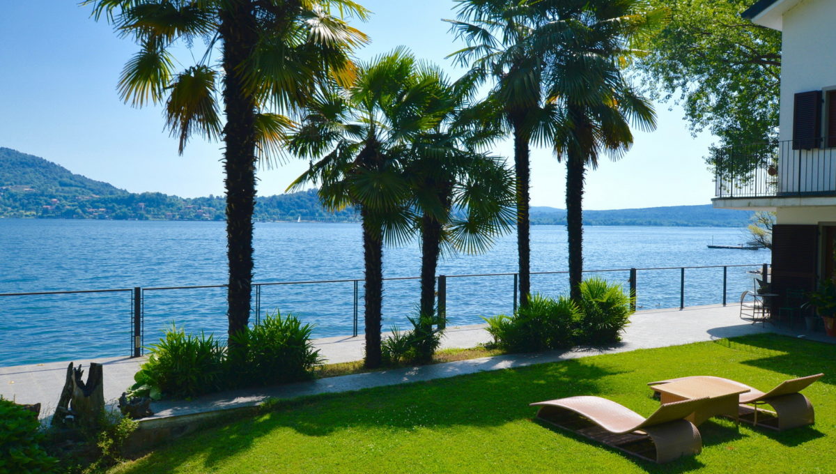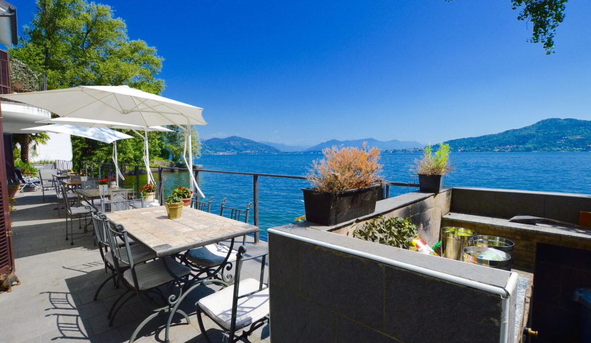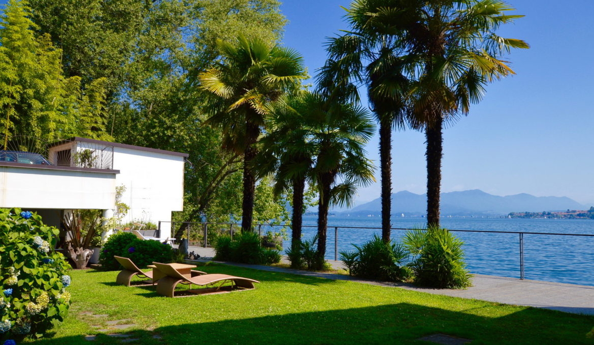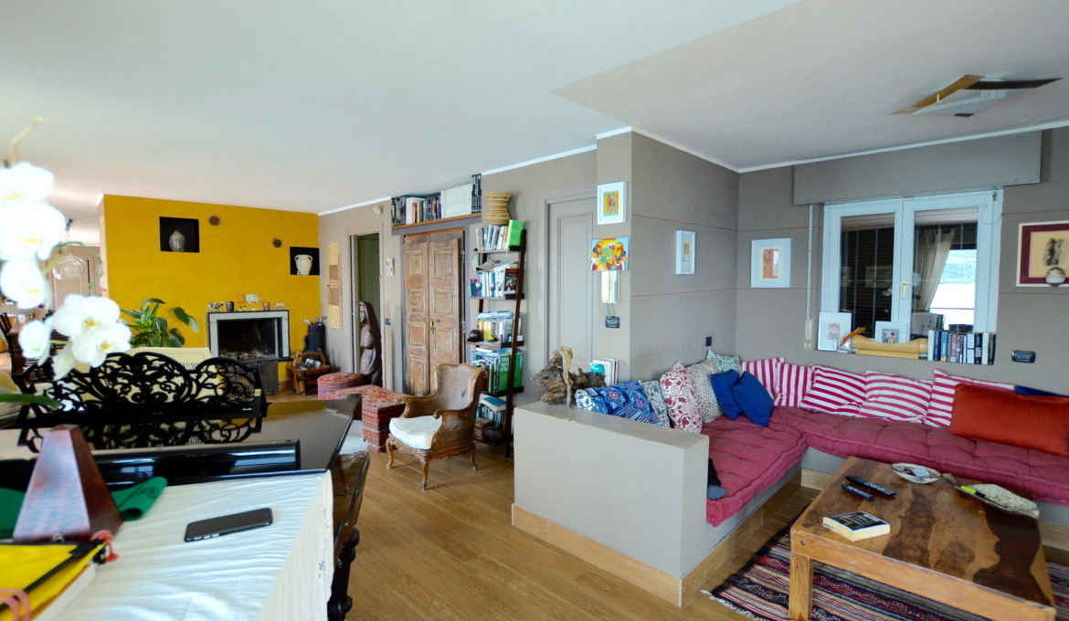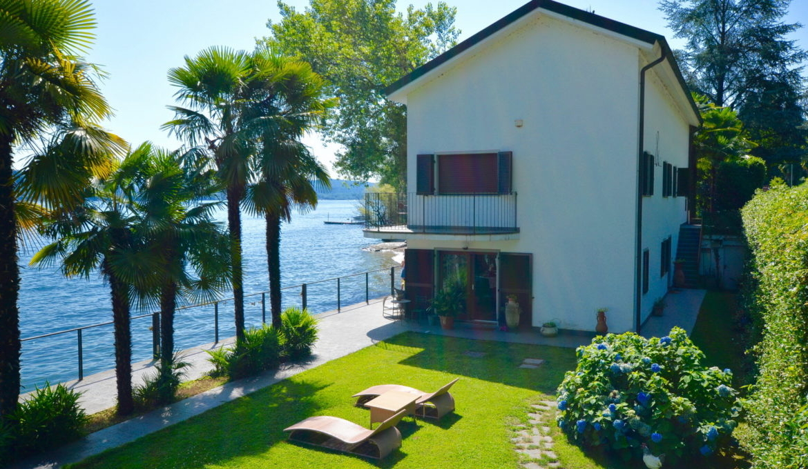 Exquisite villa, with a beautiful garden on the first line of Lake Maggiore, with a private jetty for boats. The total area is 400 sq.m. The villa is located on three levels and has a spacious hall with an open kitchen, 5 bedrooms, 7 bathrooms, 4 balconies and a terrace overlooking the lake and the Rocca d’Angera. Currently used as a Bed & Breakfast hotel. Can be divided into two families for living, or used for hotel activities. Complement the property garage and two parking spaces. Energy efficiency class – F.