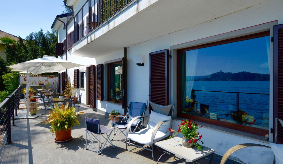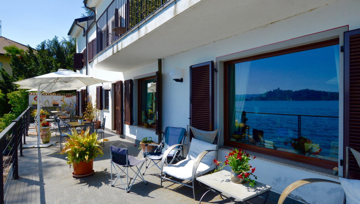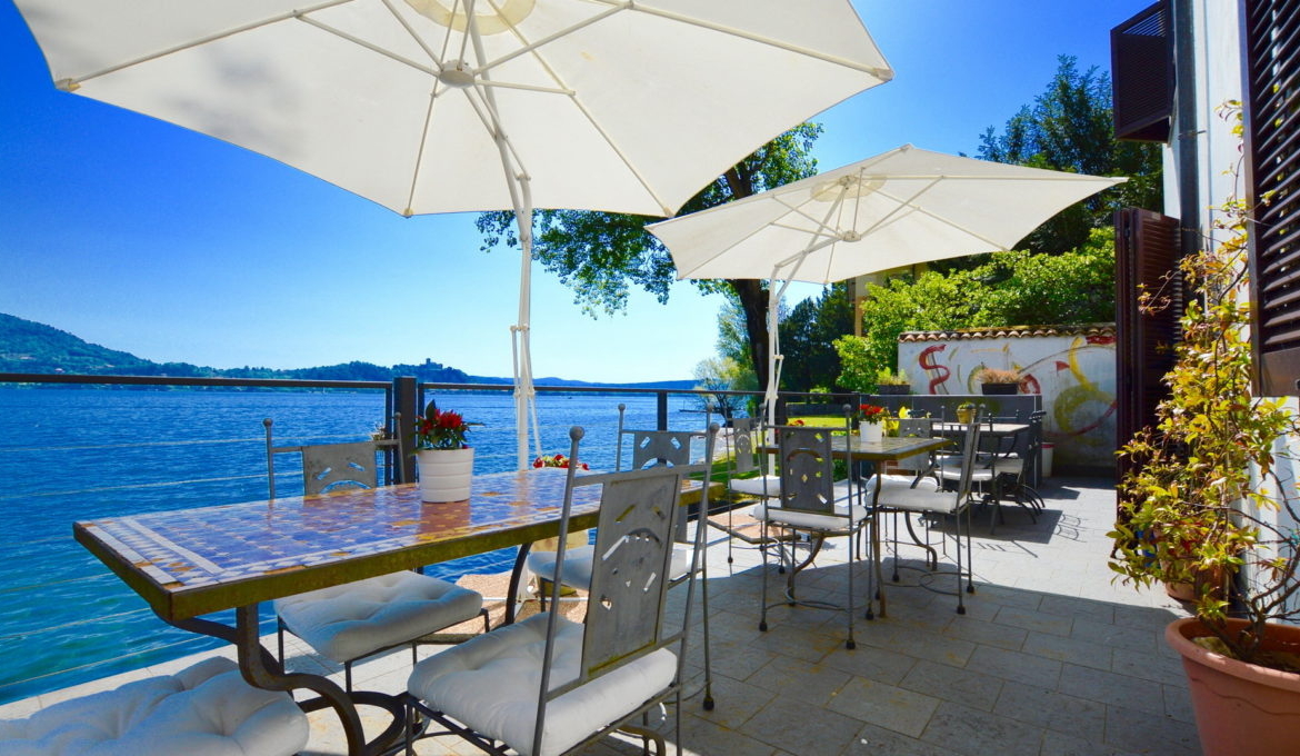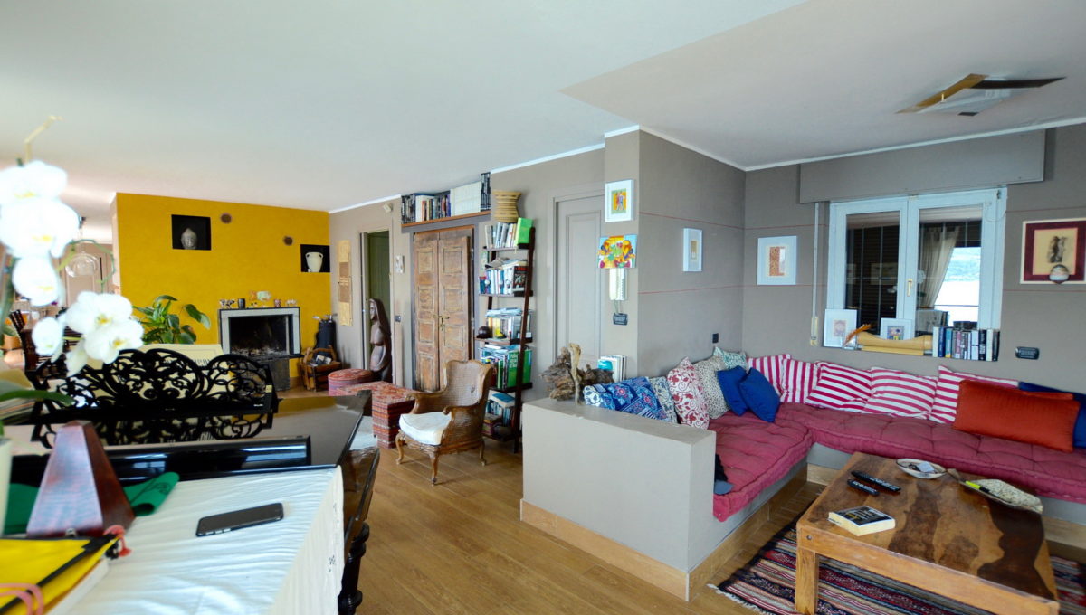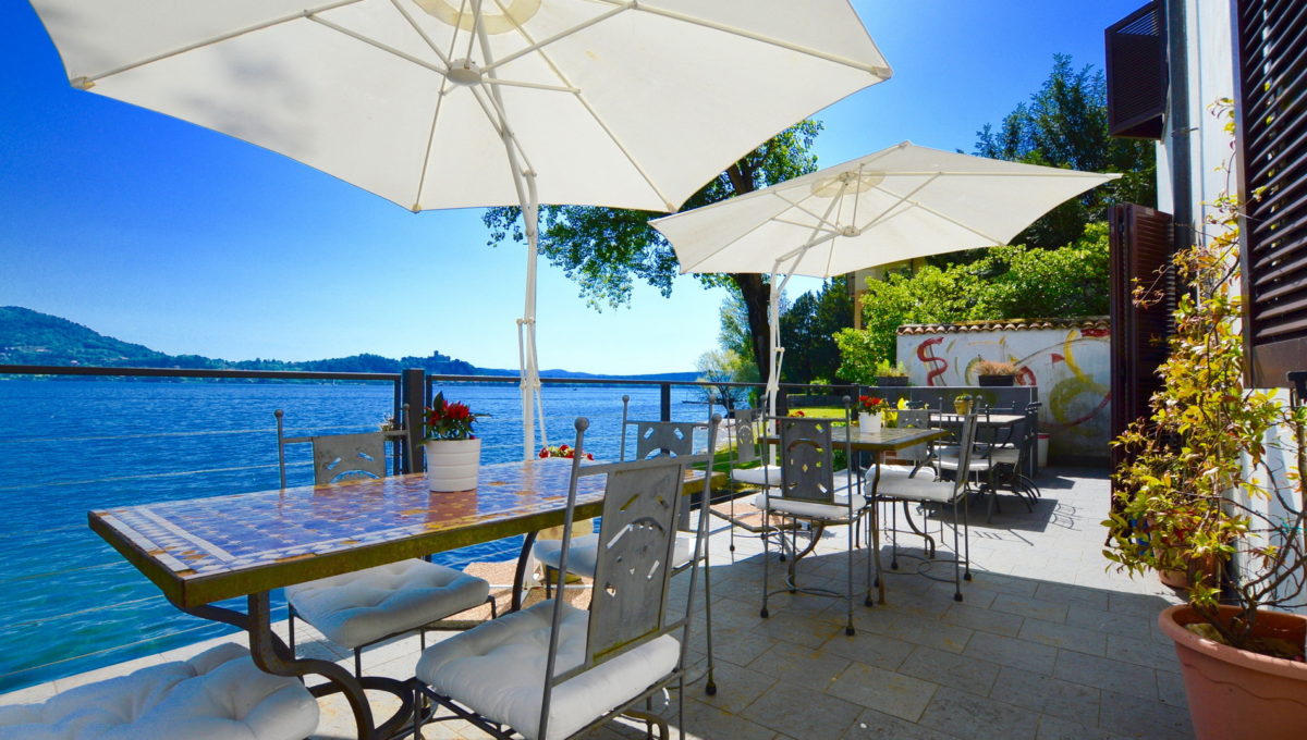 Exquisite villa, with a beautiful garden on the first line of Lake Maggiore, with a private jetty for boats. The total area is 400 sq.m. The villa is located on three levels and has a spacious hall with an open kitchen, 5 bedrooms, 7 bathrooms, 4 balconies and a terrace overlooking the lake and the Rocca d’Angera. Currently used as a Bed & Breakfast hotel. Can be divided into two families for living, or used for hotel activities. Complement the property garage and two parking spaces. Energy efficiency class – F.