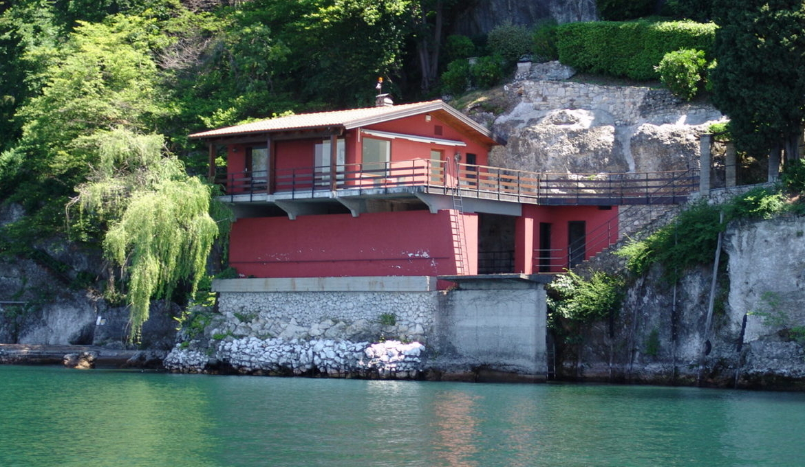 The property includes: a main villa, a marina, a guest house and a house for a watchman. Next to the pier there is a pier for storing boats in the open to the waves. The marina is divided into three zones: the water zone in which the boat can be located, about 8 meters long, the inter-level floor where the warehouse is located, with an area of about 64 sq.m., for storing shipboard instruments, on the last floor there is an independent apartment that has two sleeping a small kitchen and two bathrooms, surrounded by a terrace and a balcony. The main villa is located on three levels and has an area of 420 sq.m. On the first floor of the hallway there is an exit to a spacious living room with a large fireplace and stained-glass windows, with a view of the lake, dining area and kitchen, guest bathroom, 2 bedrooms with two bathrooms and another bathroom. The second floor is completely occupied by a bedroom with a dressing room, a bathroom and a terrace. On the same floor there is another bedroom and bathroom, as well as an attic. On the lower floor – technical rooms, laundry, cellars and boiler room, another kitchen in the tavern room.