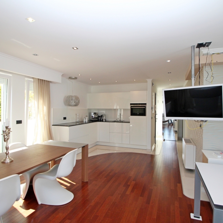 According to the ideas of the architect in the basement there is a separate apartment for guests, which consists of living room, kitchen and dining room, bedroom, bathroom, storeroom, tavern and terrace, total net of 72 m2.