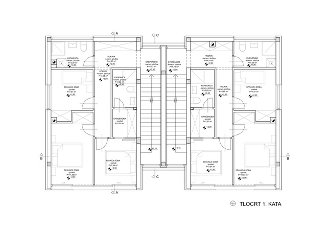 S1 – 147,75 m2. Basement (37,66 m2) consists of the hall, storage, bathroom and 2 terraces of 33,62 m2 and 16,53 m2. Ground floor (57,33 m2) consists of the hall, kitchen, dining room, living room, bathroom and storage. First floor (52,76 m2) consists of the 2 halls, 3 bedrooms, 2 bathrooms and wardrobe. Price : 270.000 EUR.